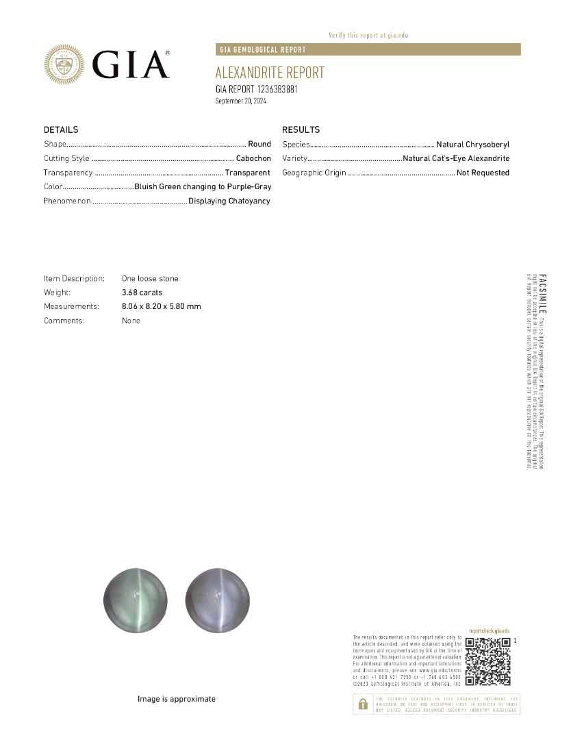 התכוננו להתפעל מקריסוברייל טבעי זה במשקל 3.68ct, משנה צבעים, שהוא למעשה שתי אבני חן באחת. קבושון עגול נדיר זה הוא אמן הסוואה משכנע, המשתנה מירוק-כחלחל קריר לאפור-סגול עמוק בהתאם לתאורה. מגובה במלואו בתעודת GIA, אוצר זה בגודל 8 מ"מ הוא הפריט האולטימטיבי לאספן הדורש יוקרה דרמטית ואווירה שמימית ייחודית במינה.