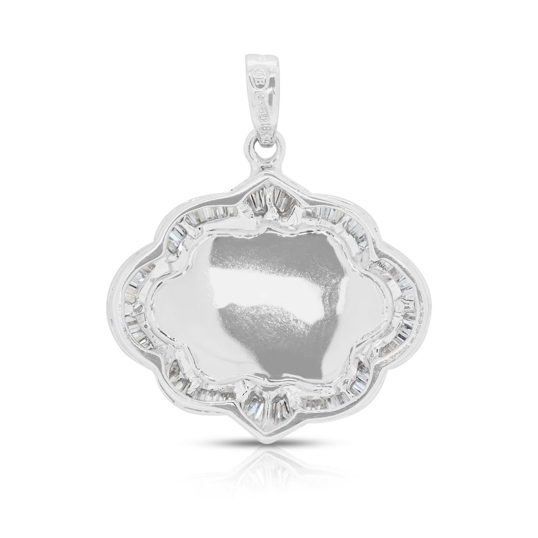 מזל פוגש יוקרה עילית בתליון זהב לבן 18K נועז זה, המגיש קסם טהור ומשכנע. ירקן ירוק מגולף בכישרון ממוסגר על ידי 1.04ct מרהיבים של יהלומים טבעיים בחיתוך טרפז, המציעים נצנוץ צבע G-H חד וייחודי לחלוטין. בגודל נועז של 3 ס"מ, זהו פריט ההצהרה האולטימטיבי לאישה שרוצה שתכשיטיה יהיו נדירים, סמליים ובלתי נשכחים כמו מציאת תלתן ארבעה עלים.
