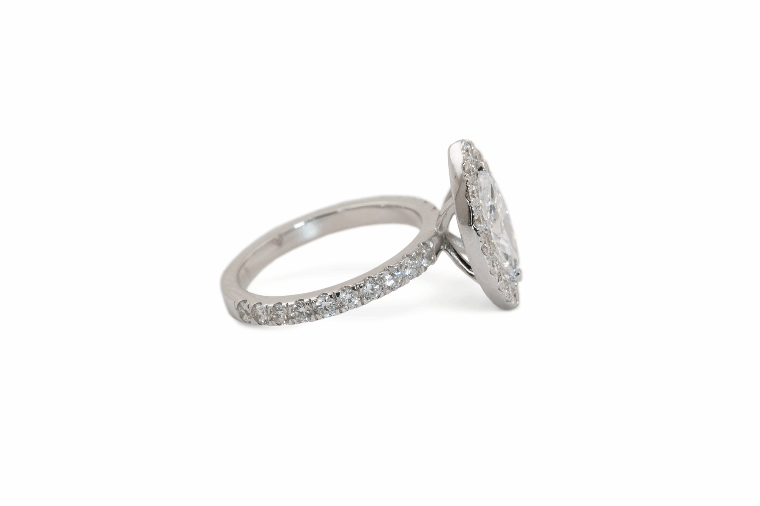 טבעת אירוסין בסגנון הילה כאשר היהלומים של ההילה הם קטנים יחסית על מנת שלא יאפילו על האבן המרכזית. מראה מאוד מעודן לצד טבעת דקה בפרופיל מעוגל. את הטבעת ניתן להתאים למגוון רחב של תקציבי וצורות יהלום.