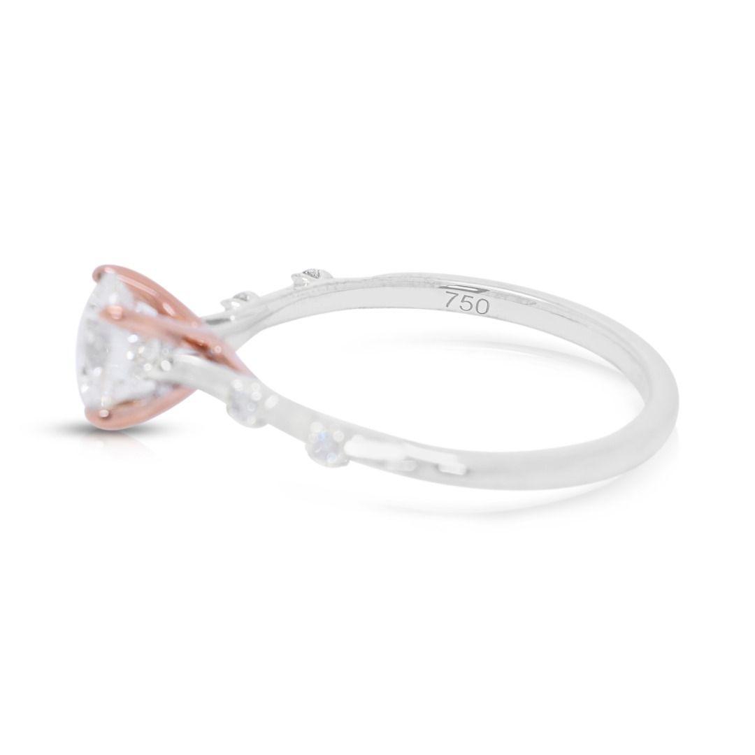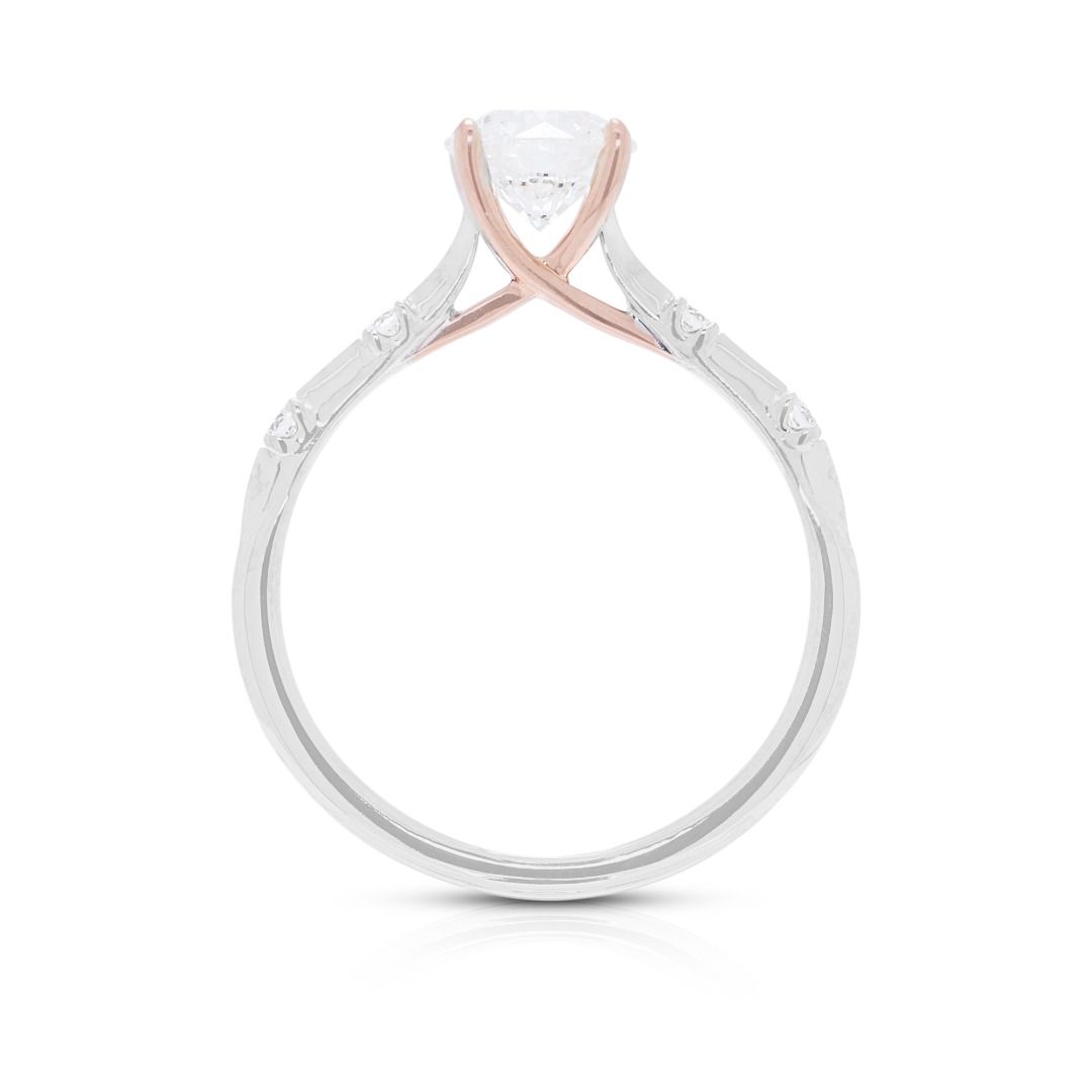 טבעת אירוסין Jann Paul מזהב דו-גוני 18K משובצת יהלום מבריק 0.79ct – מתועדת AGS