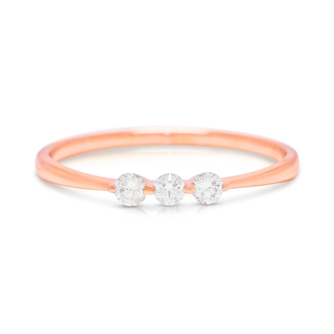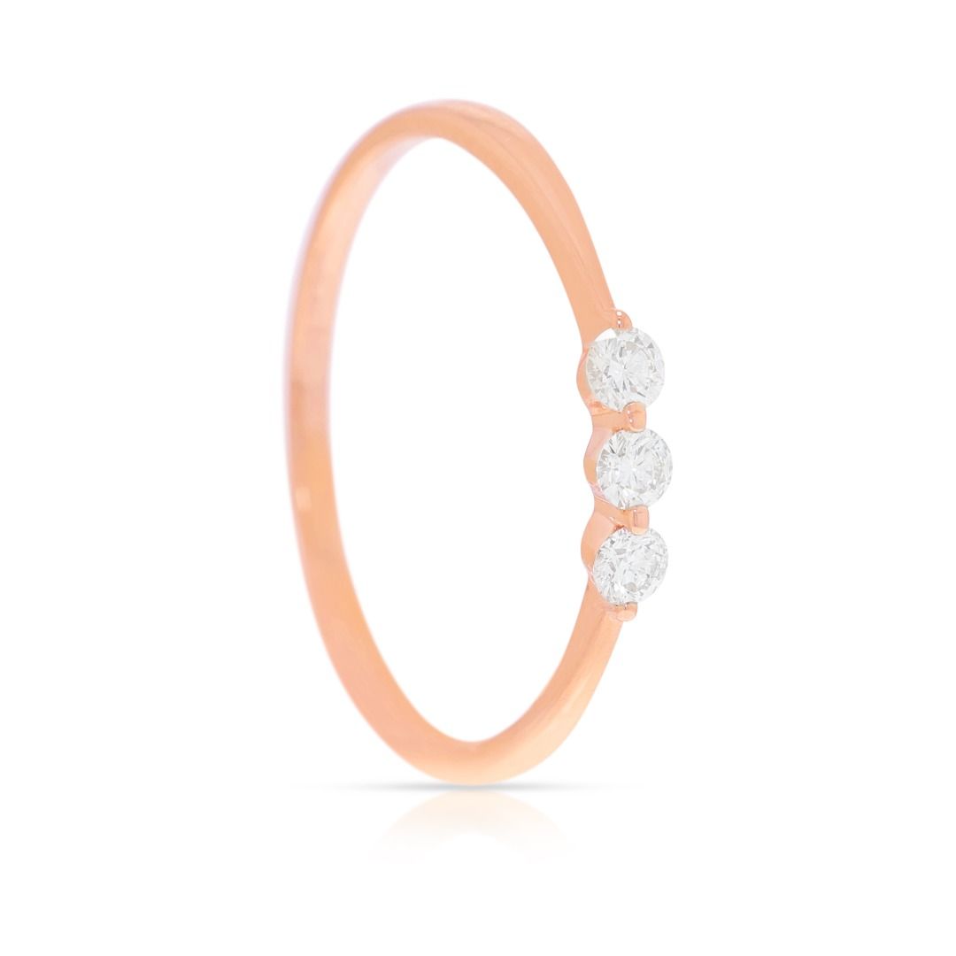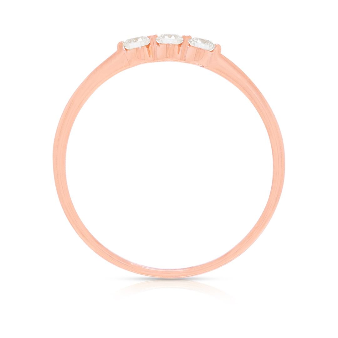 טבעת אלגנטית עם שלושה יהלומים טבעיים במשקל 0.15 קראט בזהב ורוד 18 קראט