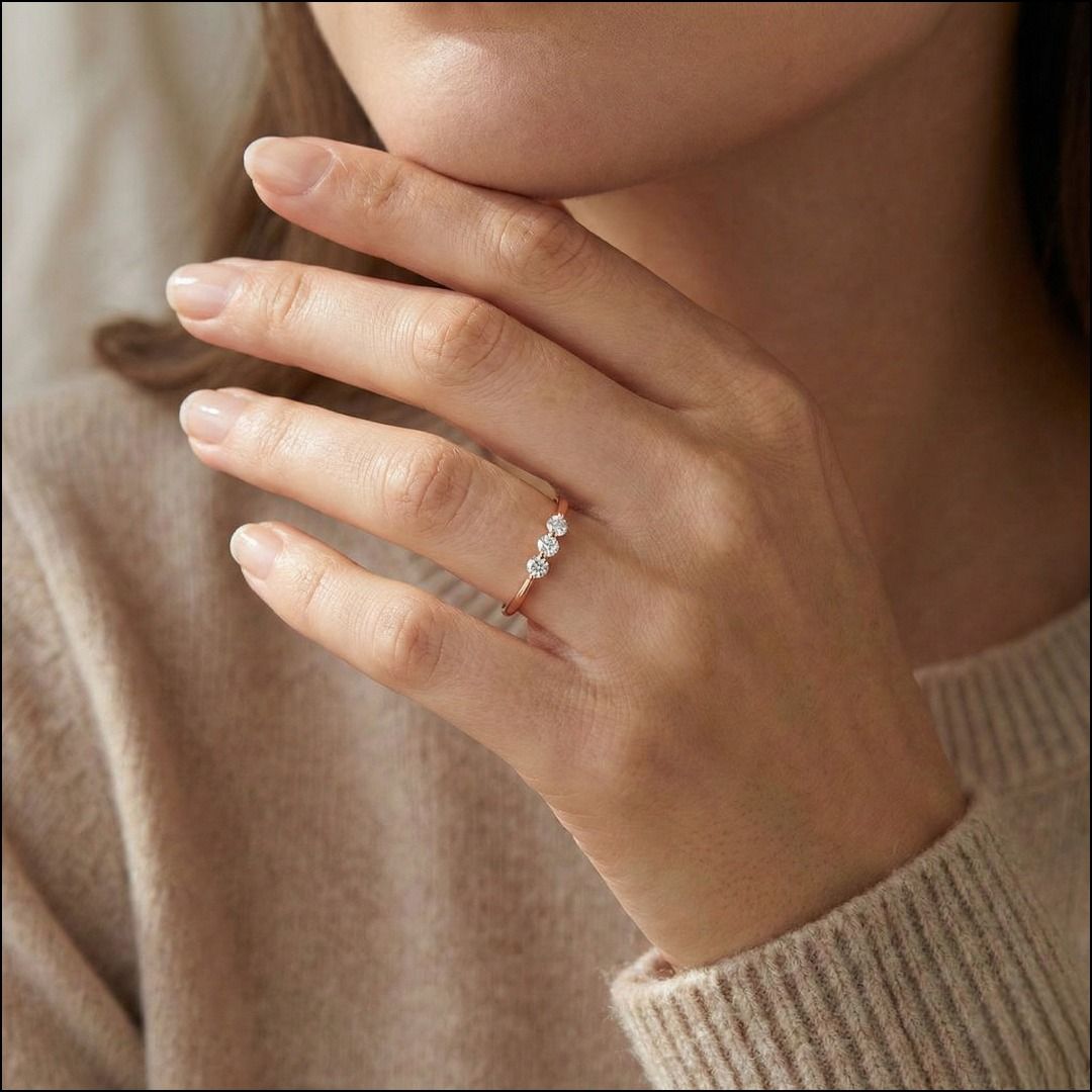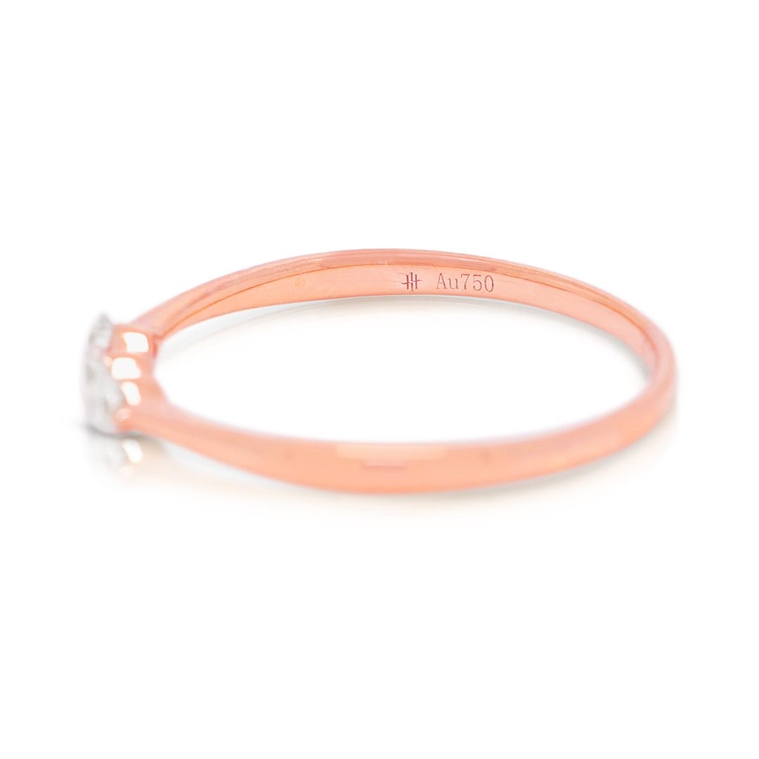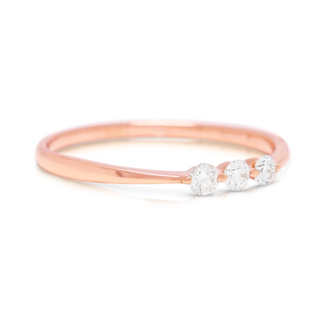 טבעת אלגנטית עם שלושה יהלומים טבעיים במשקל 0.15 קראט בזהב ורוד 18 קראט