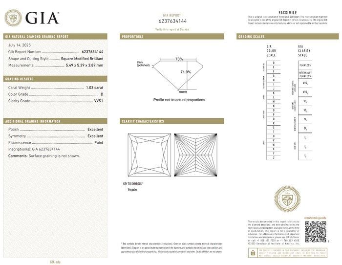 יצירת מופת מעודנת של אור ויוקרה, טבעת אלגנטית זו מציגה יהלום בחיתוך מרובע במשקל 1.03ct בדרגת הצבע הגבוהה ביותר ובניקיון יוצא דופן. משובץ במומחיות בזהב לבן 14k מלוטש, האבן המרכזית זוהרת בברק טהור. את זוהרה משלימים שישה יהלומי צד בחיתוך עגול במשקל כולל של 0.12ct. יצירה זו, מתועדת GIA, היא התגלמות החן והעידון.