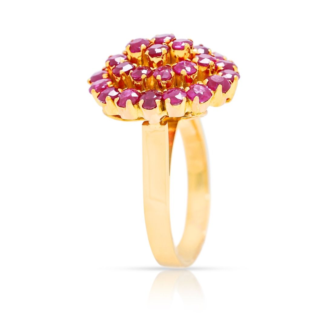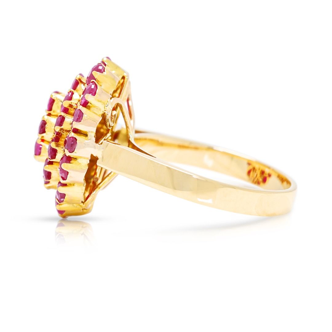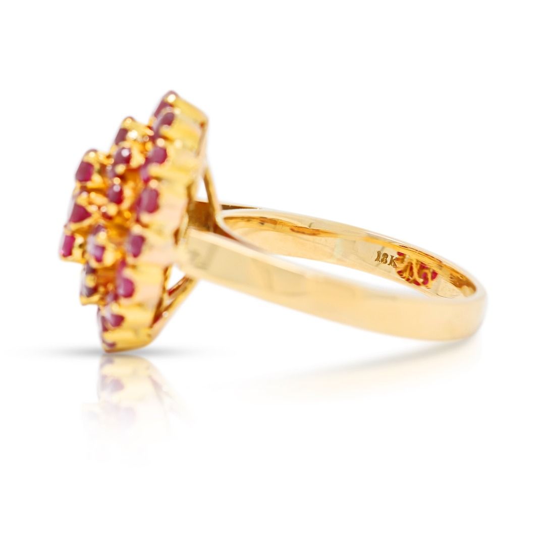 טבעת אשכול פרחונית זוהרת עם רובי אדמדם-ורדרד 1.80ct בזהב צהוב 18K