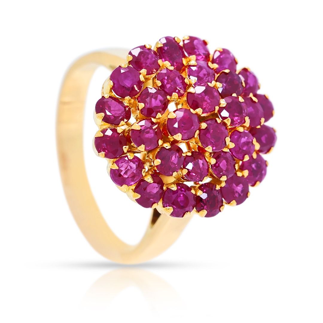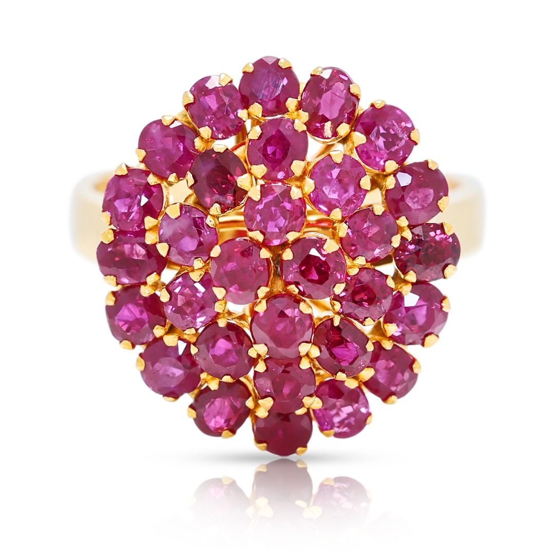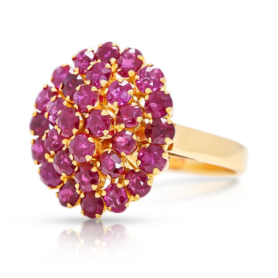 טבעת אשכול פרחונית זוהרת עם רובי אדמדם-ורדרד 1.80ct בזהב צהוב 18K