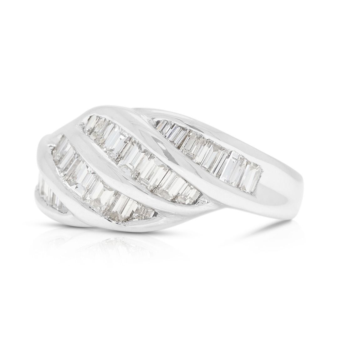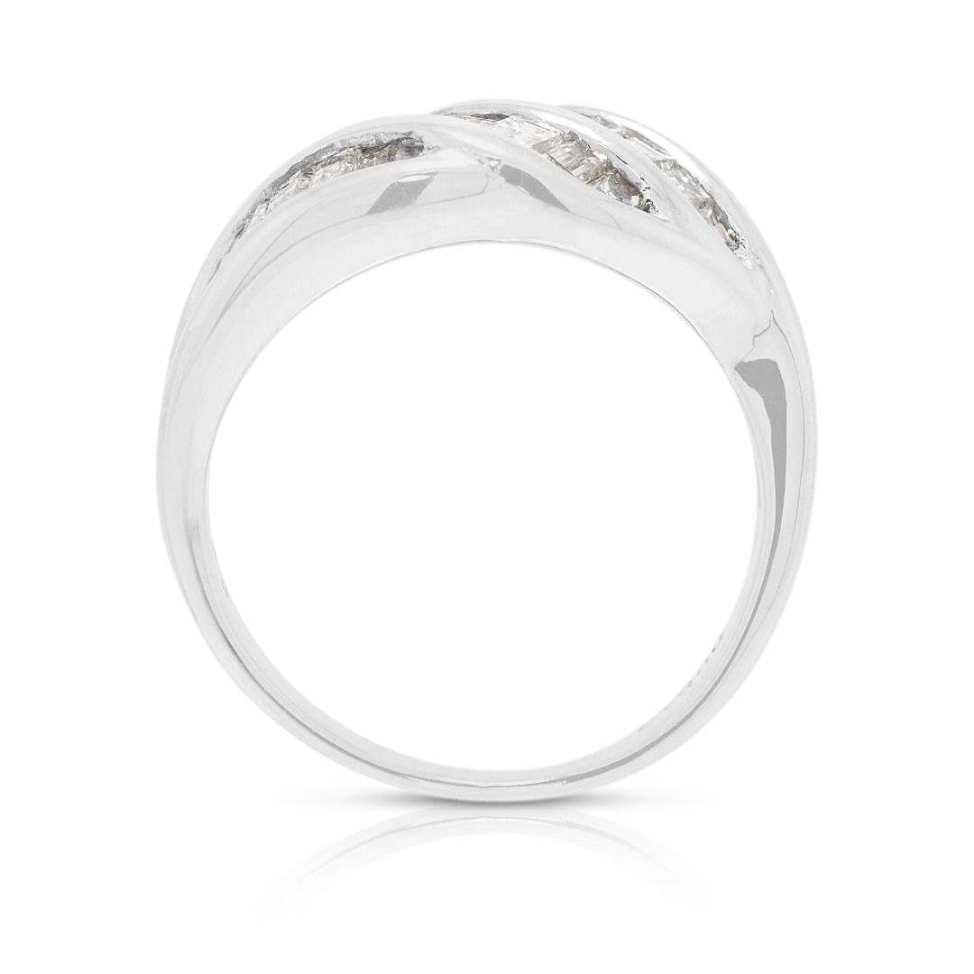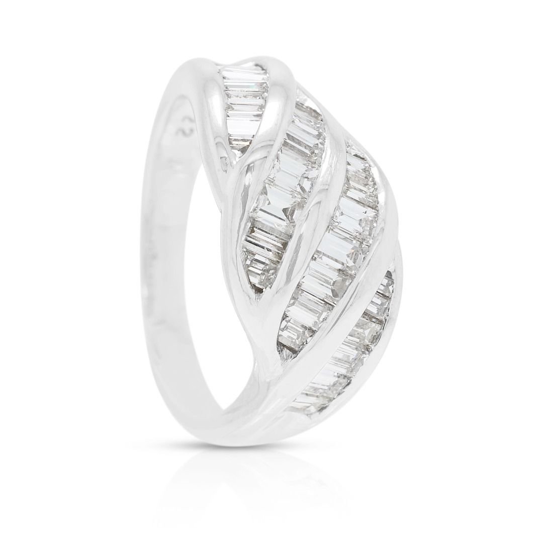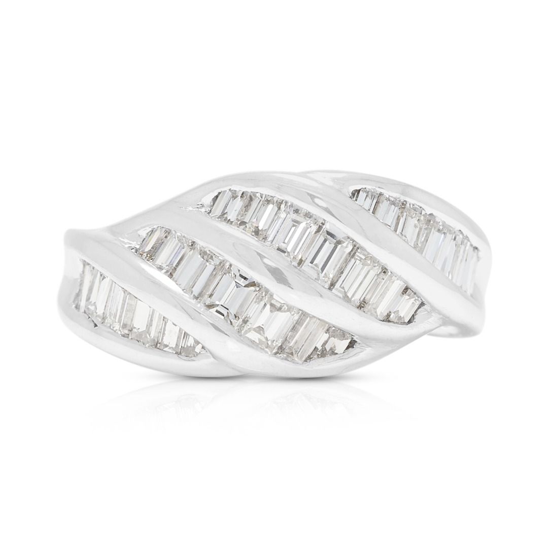 טבעת גל פיסולית מיהלומי באגט טבעיים 0.70 קראט בזהב פלטינה