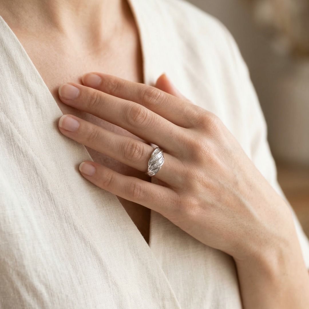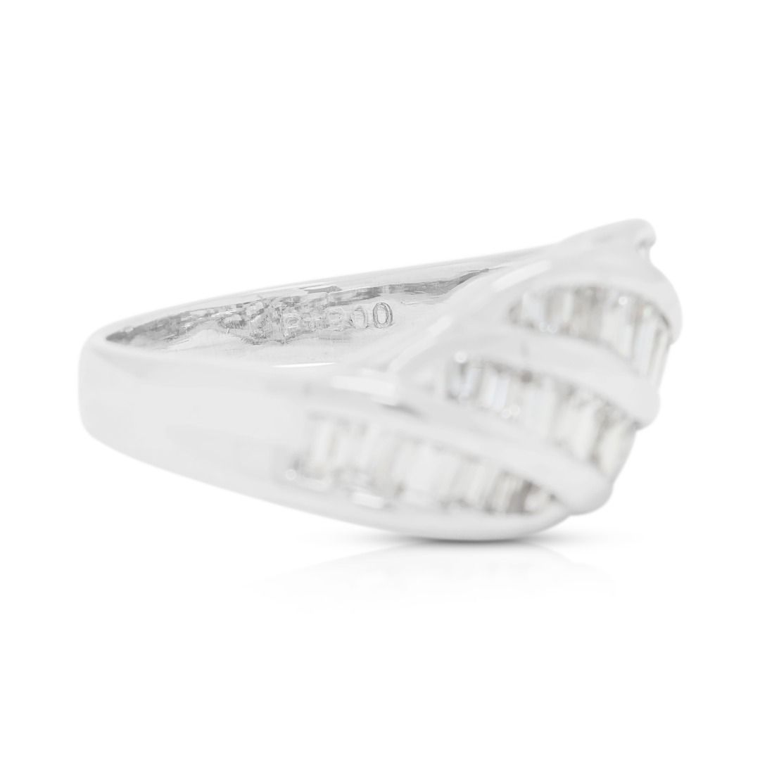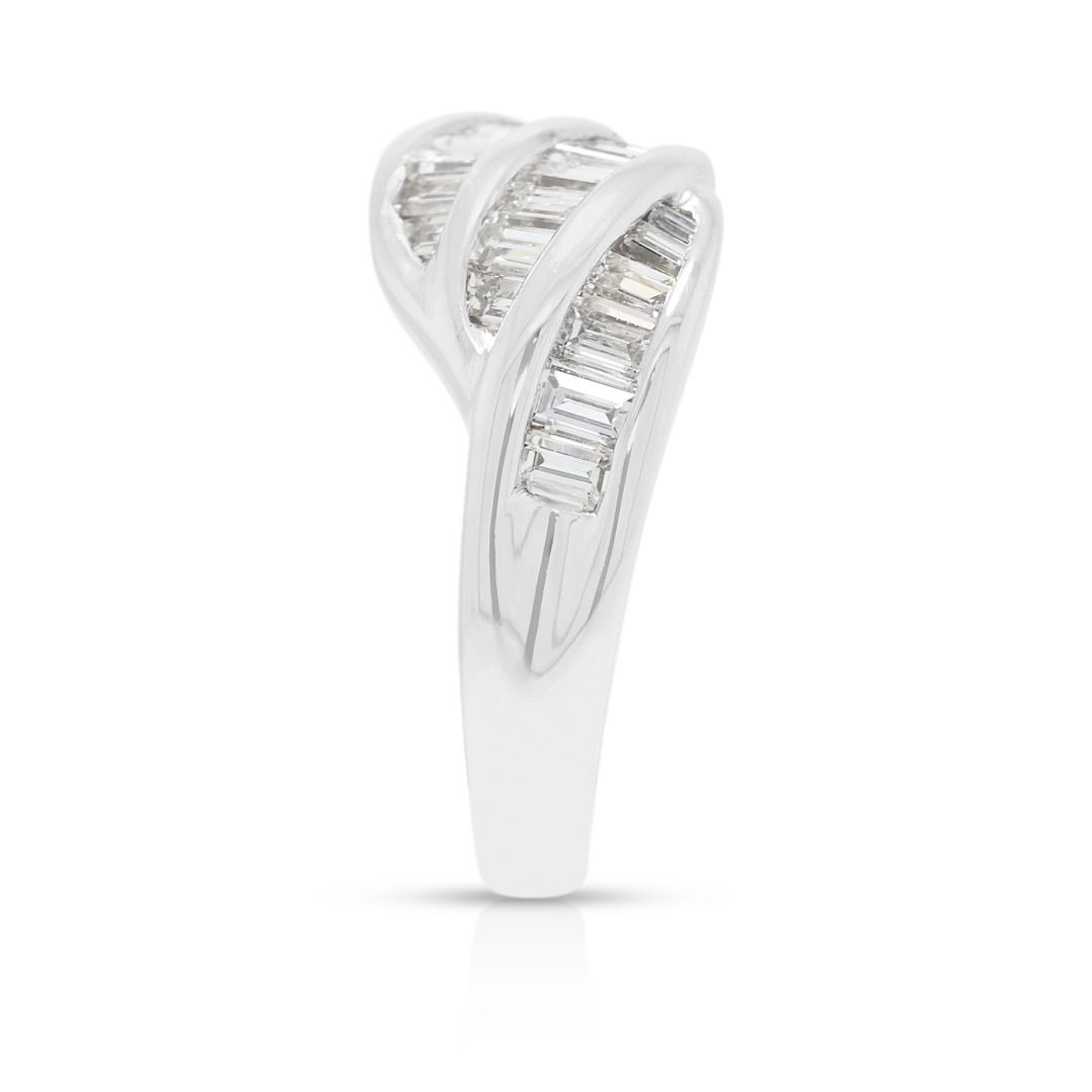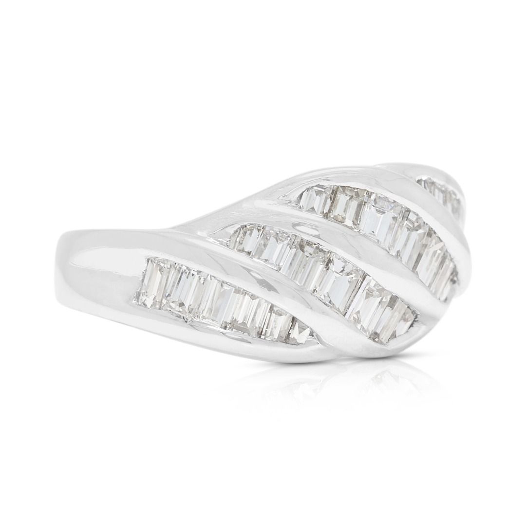 טבעת גל פיסולית מיהלומי באגט טבעיים 0.70 קראט בזהב פלטינה