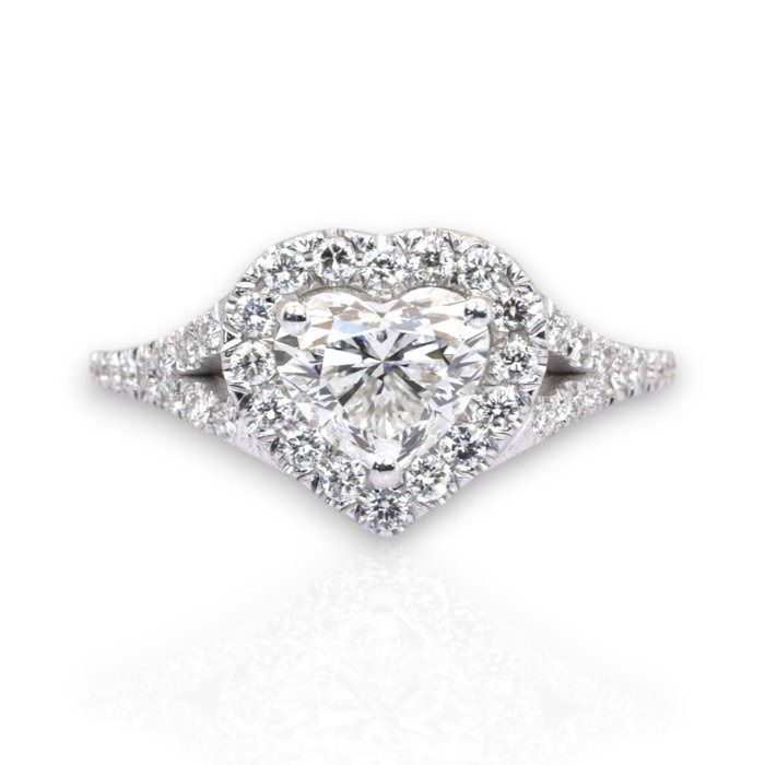 טבעת הילה בצורת לב בזהב לבן 18 קראט, משובצת יהלומים במשקל 1.46 קראט, מתועדת IGI