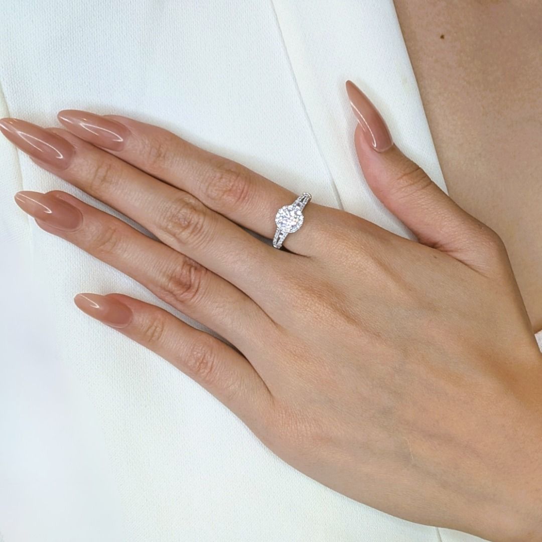 טבעת הילה יהלומים עוצרת נשימה 0.88 קראט בזהב 18 קראט בשני גוונים – GIA מתועדת