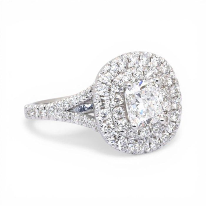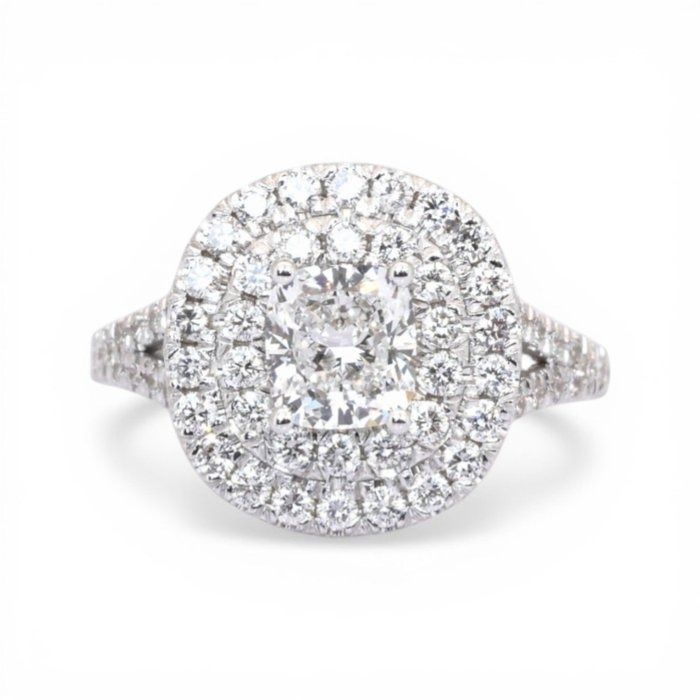 טבעת הילה כפולה מזהב לבן 18K, מתועדת GIA, 1.81 קראט