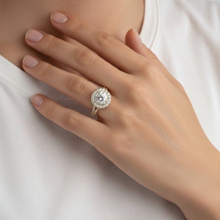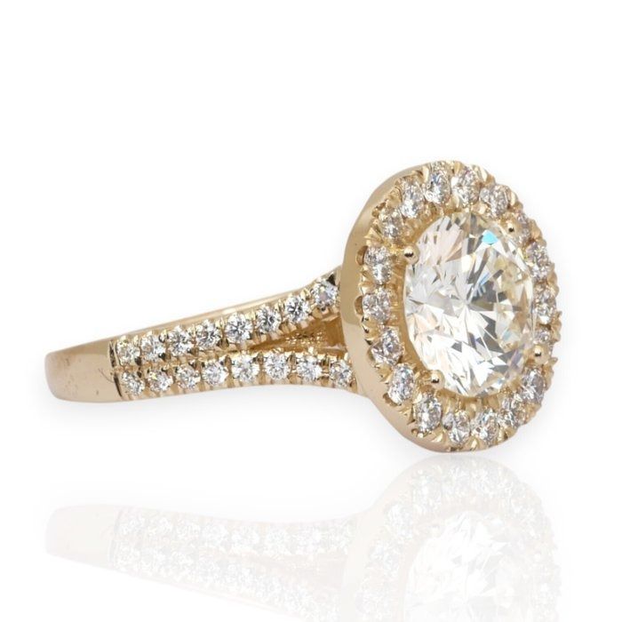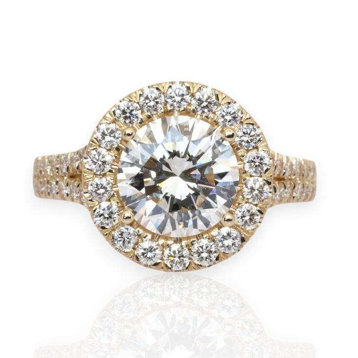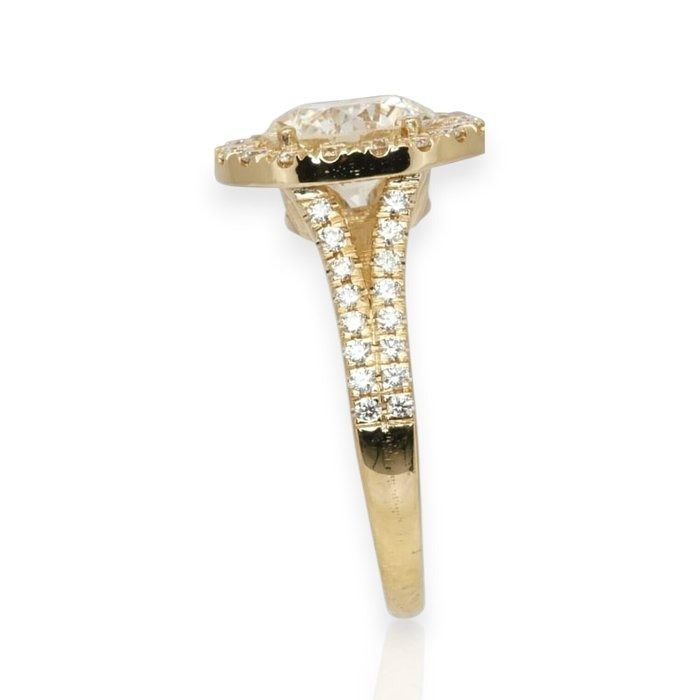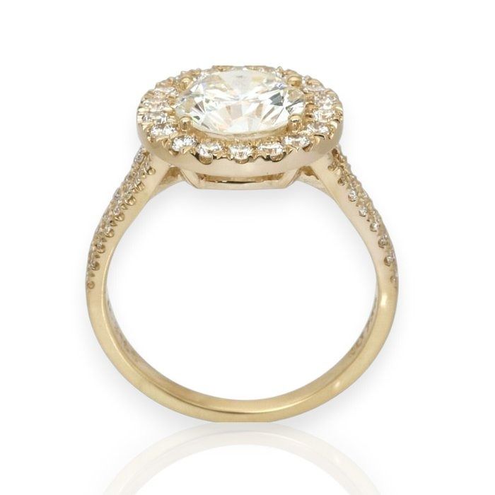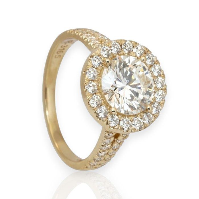 טבעת הילה מיהלומים במשקל 2.66 קרט, מתועדת IGI, בזהב צהוב 18 קראט