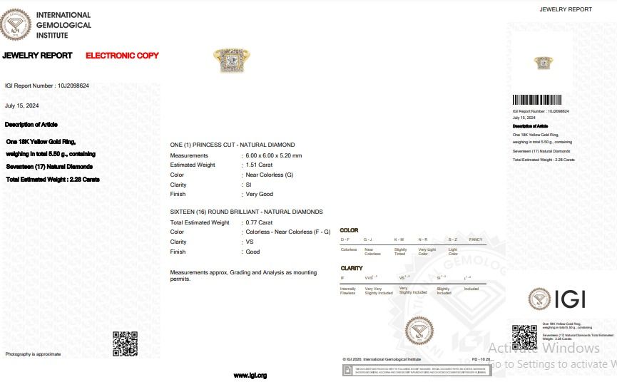 שדרגי את סגנונך עם טבעת יהלומים זו מזהב צהוב 18K. במרכזה, יהלום מרהיב בחיתוך מרובע במשקל כולל של 1.51 קראט מושך את תשומת הלב בצורתו הייחודית וברק יוצא הדופן שלו. מוקף בשישה עשר יהלומים עגולים במשקל כולל של 0.77 קראט, טבעת זו יוצרת אפקט מסנוור שבוודאי ירשים. מתועדת על ידי IGI, טבעת זו היא שילוב מושלם של יופי נצחי ועידון מודרני.