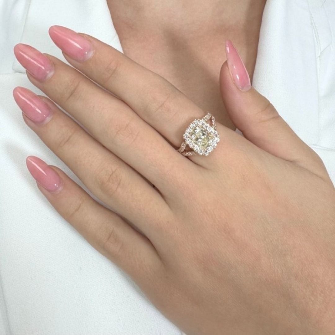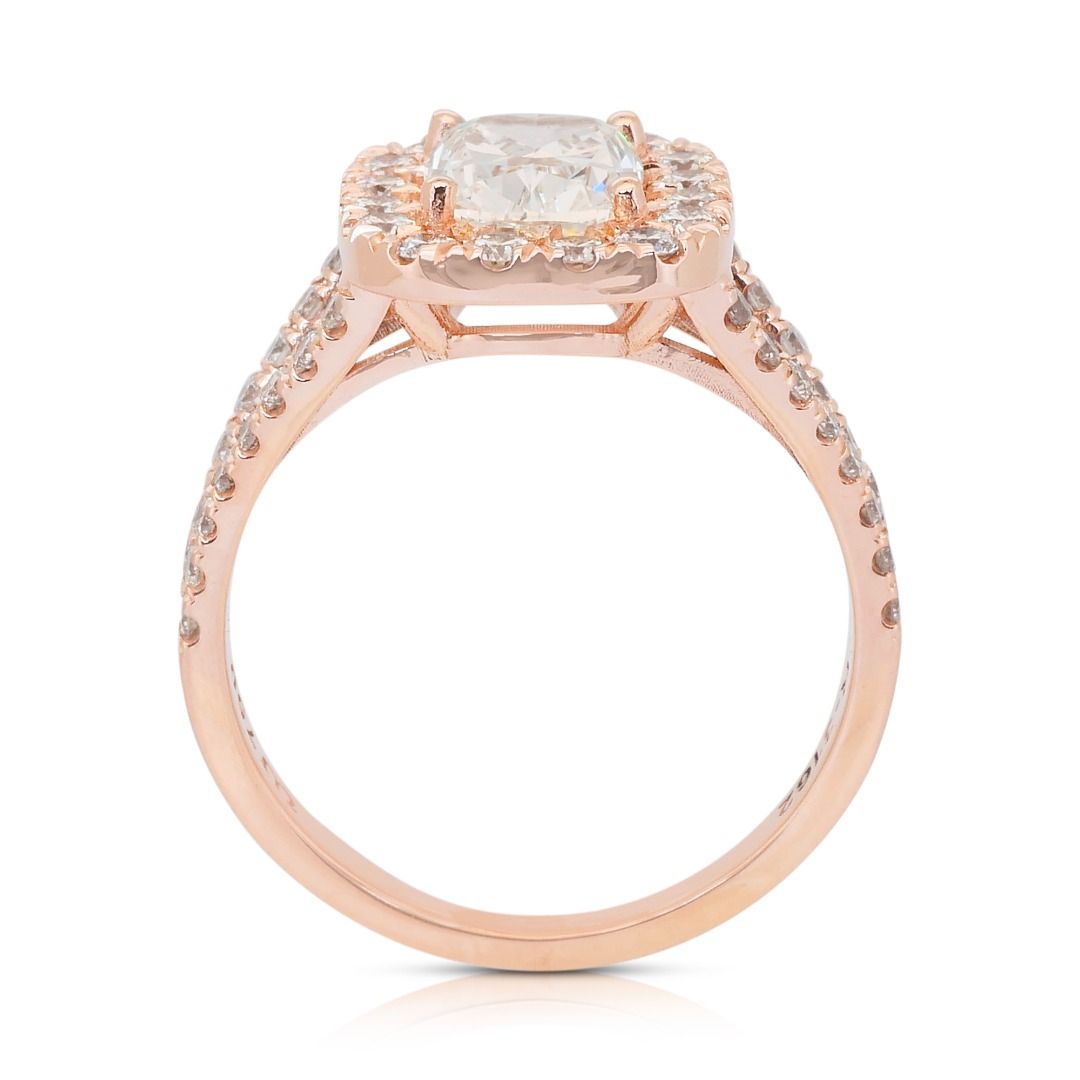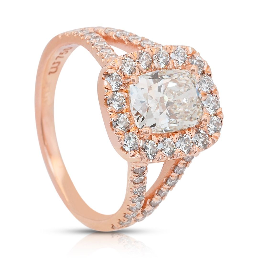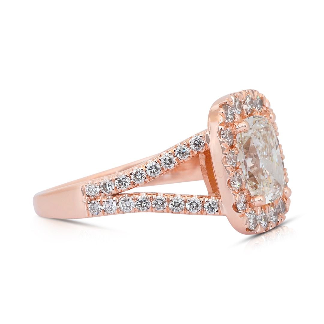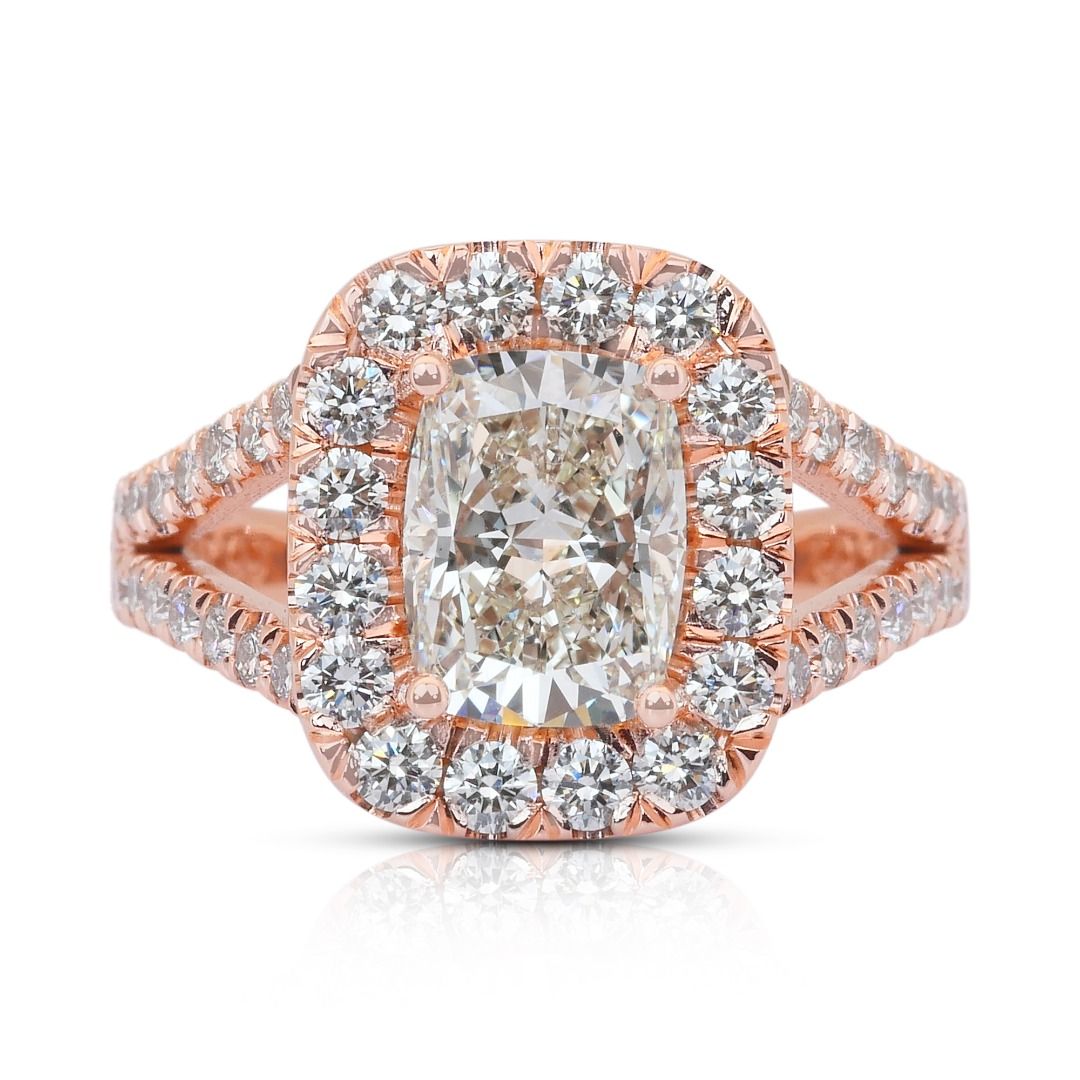 טבעת הילה משובצת יהלומים במשקל 2.45 קרט, IGI מתועדת, בזהב ורוד 18 קראט