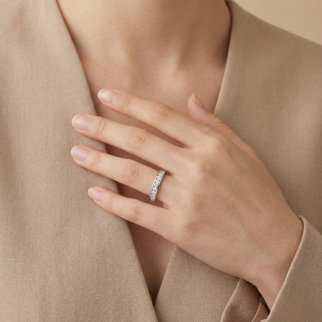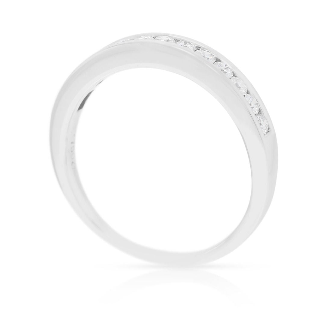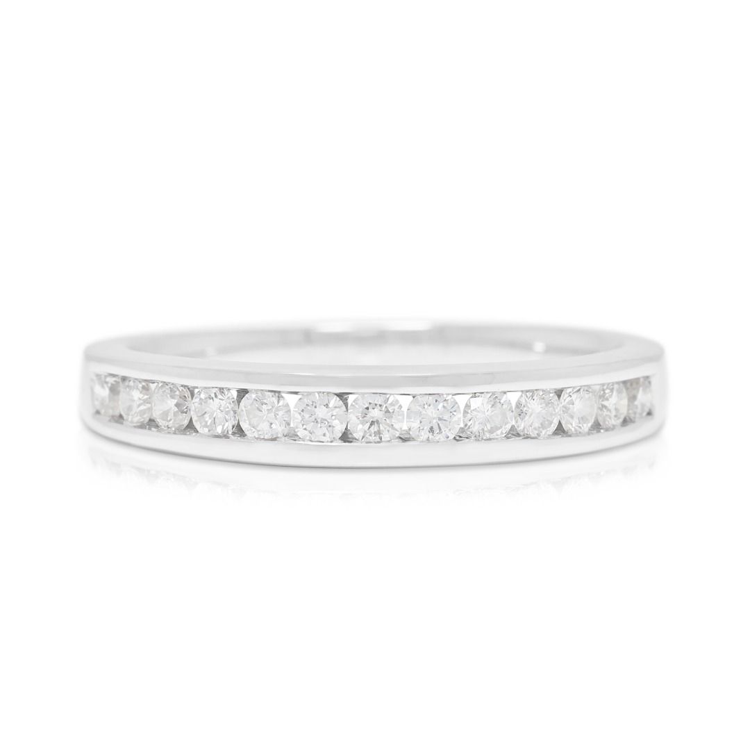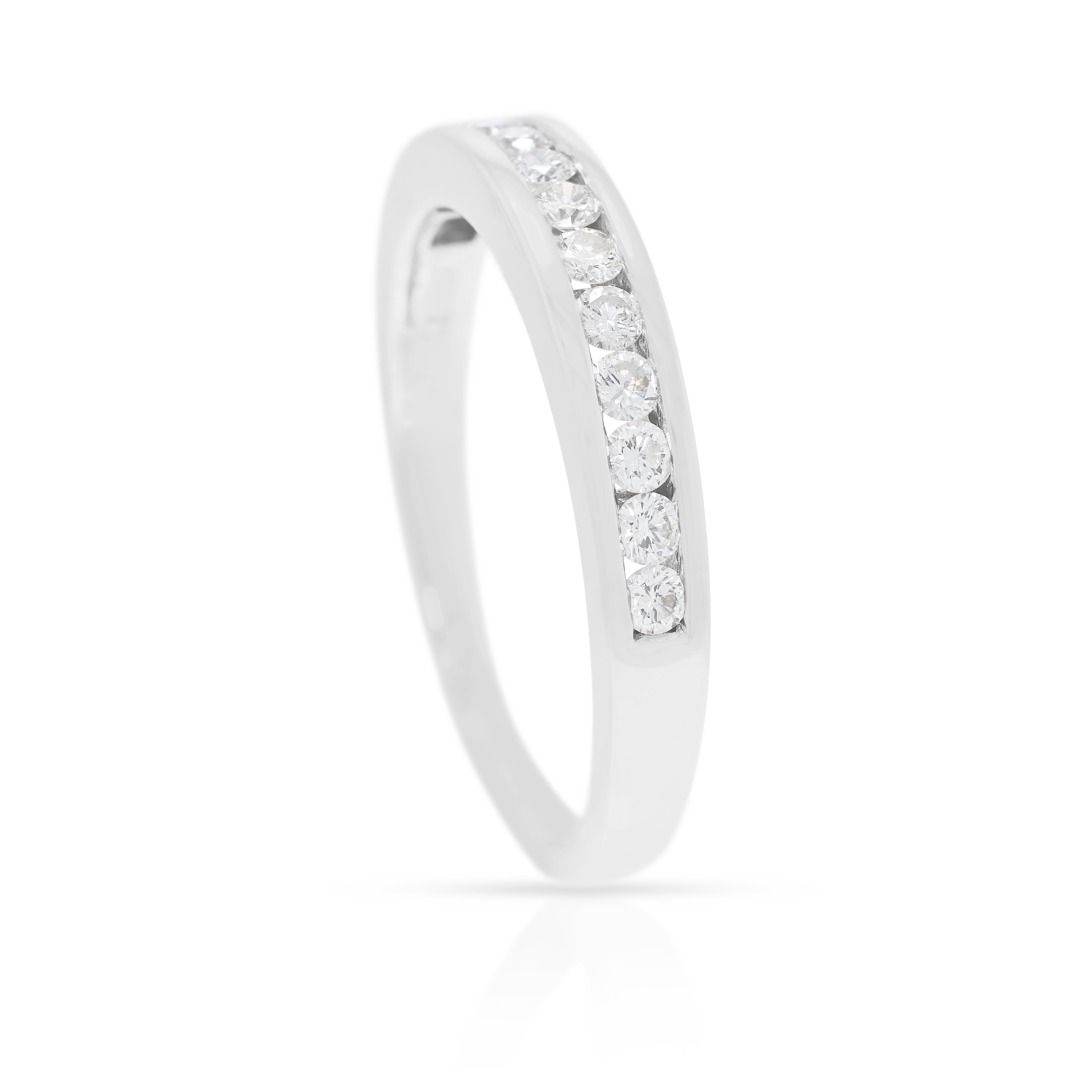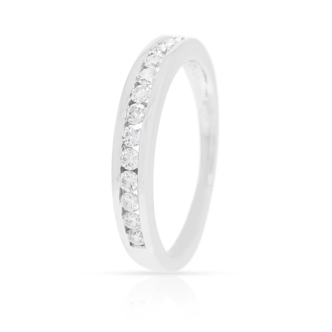 טבעת חצי נצח מזהב לבן 18 קראט, משובצת יהלומים טבעיים במשקל 0.26 קראט, בעיצוב נצחי.