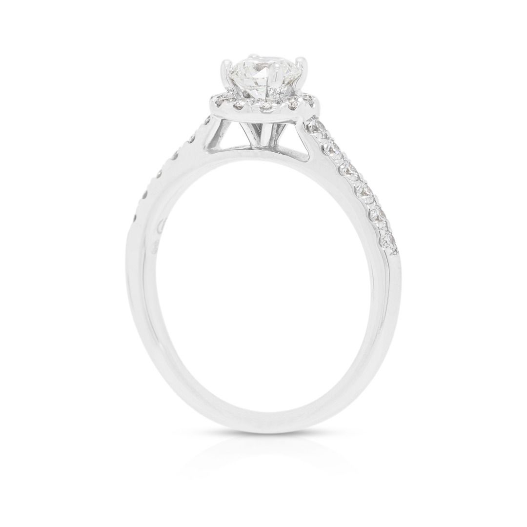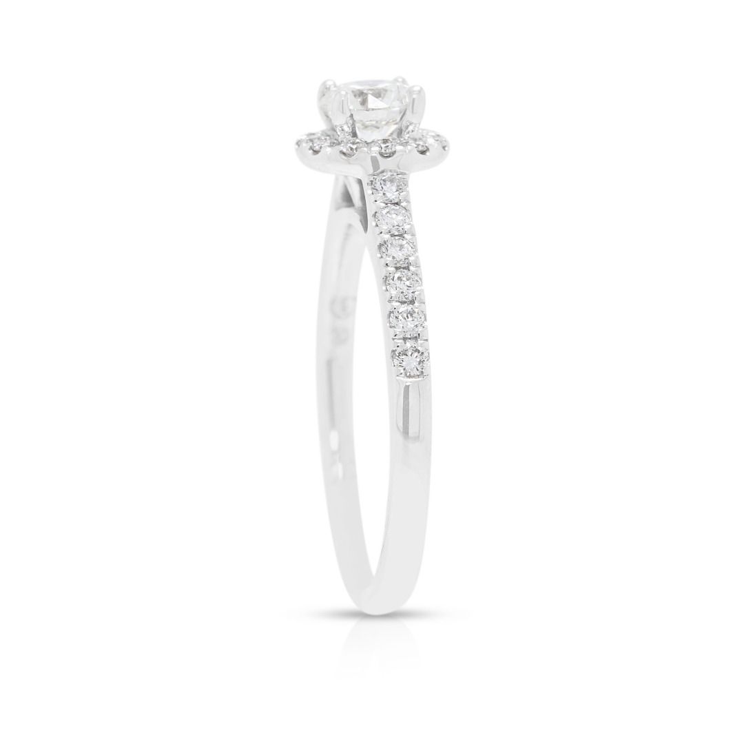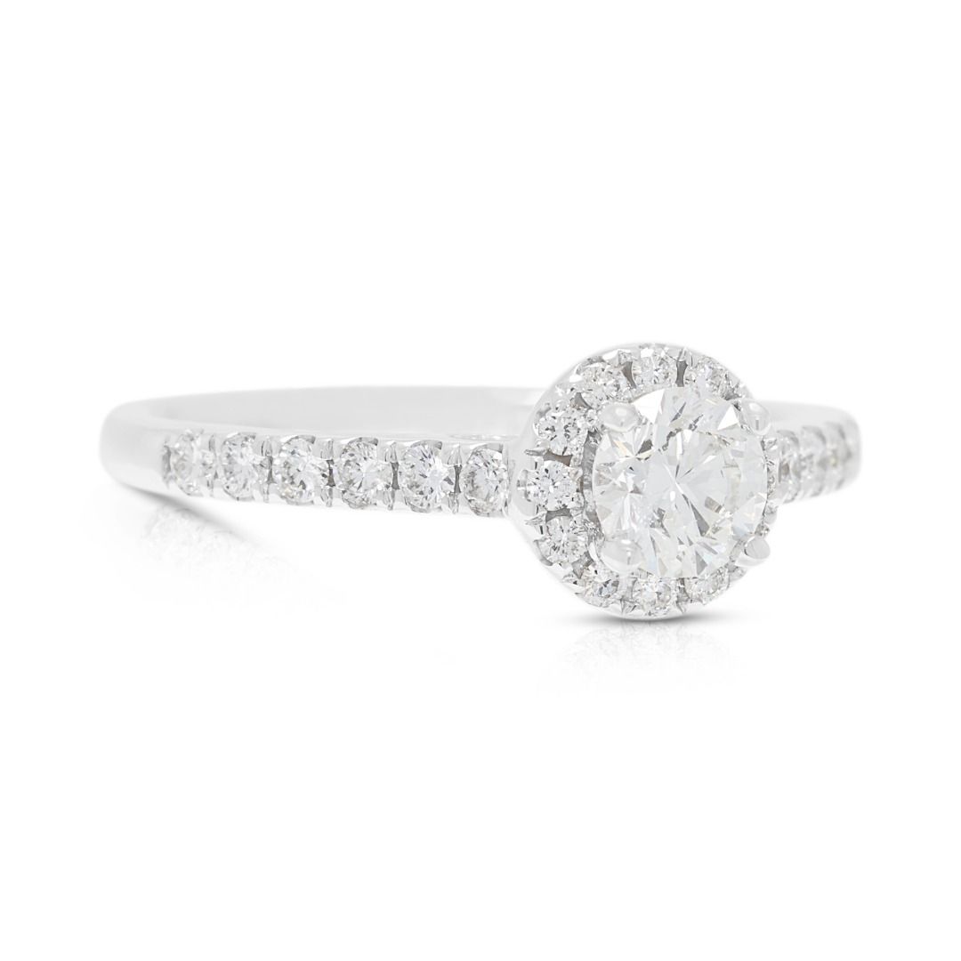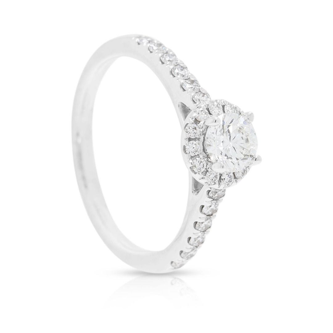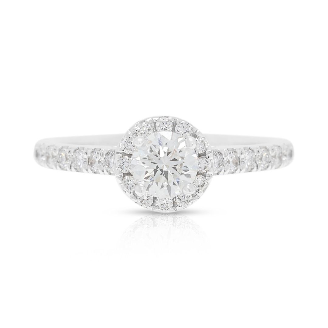 טבעת יהלום הילה ופאווה מרהיבה 0.71ct של Meyson Jewelery בזהב לבן 18K – מתועדת GIA