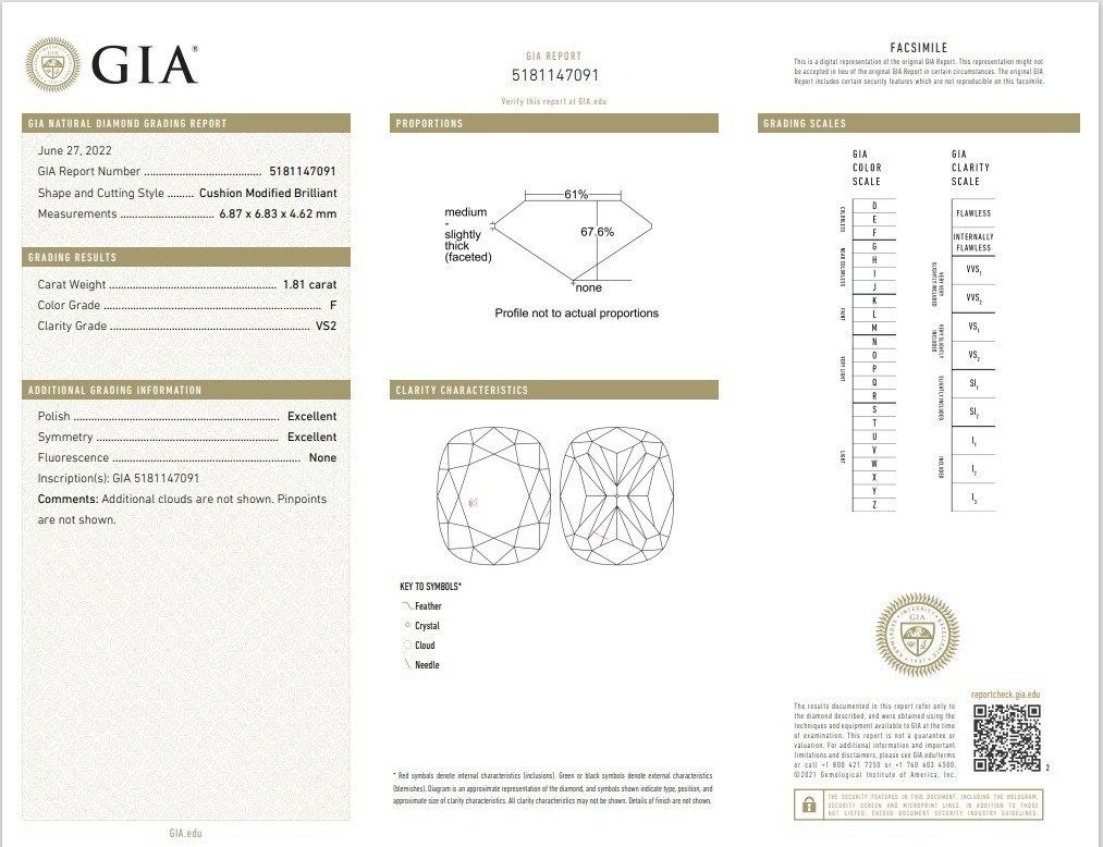 טבעת יהלומים טבעיים מרהיבה בחיתוך כרית 1.81 קרט, בזהב לבן 18 קראט – עם תעודות AIG ו-GIA