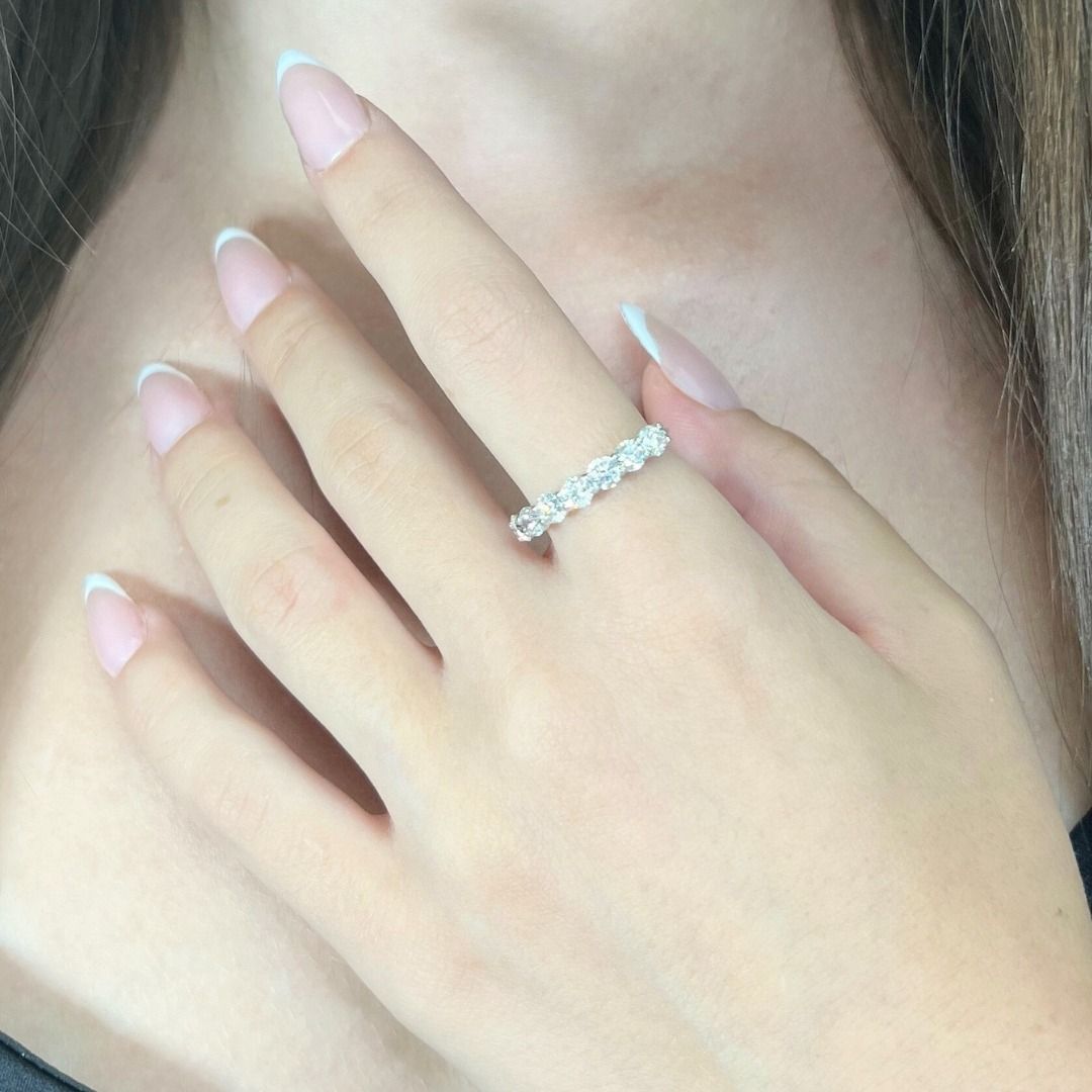 טבעת זהב לבן 18 קראט אלגנטית זו, מאופקת אך יוקרתית ללא עוררין, משובצת ב-7 יהלומים עגולים מרהיבים במשקל כולל של 1.51 קרט. השיבוץ המלוטש מדגיש את הטוהר והדיוק של יהלומים איכותיים אלה, והופך אותה להצהרה מעודנת של אלגנטיות יומיומית או לניצוץ לאירועים מיוחדים. מתועדת על ידי IGI, יצירה נצחית זו מבטיחה יופי וברק לאורך זמן.