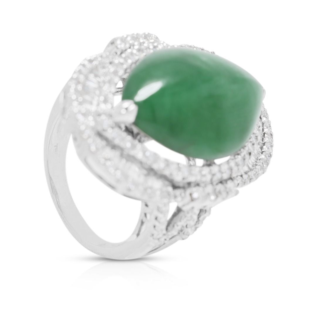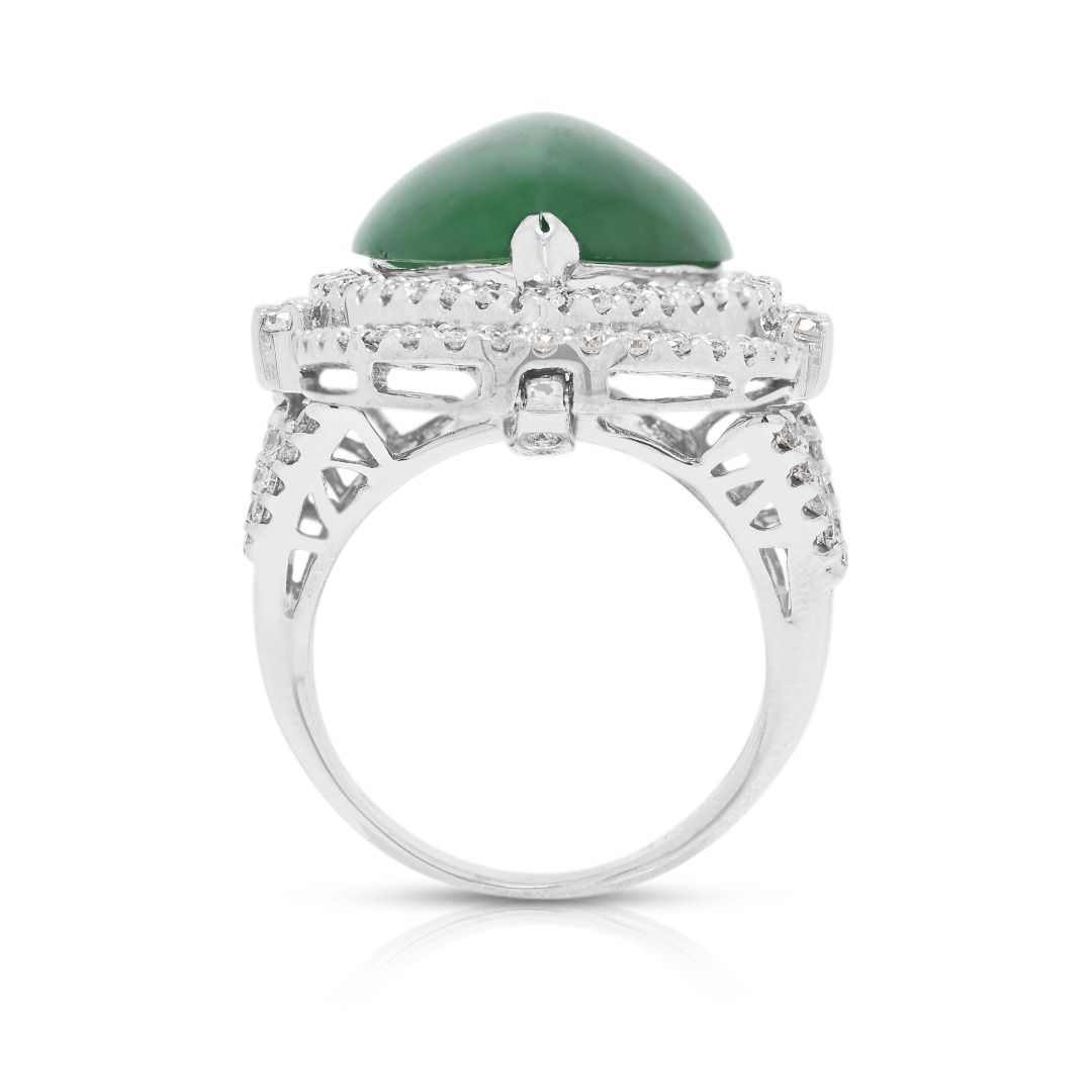 טבעת ירקן פיי צוי משובח ו-1.37 קרט בשיבוץ פאווה הילה כפולה בזהב לבן 18 קראט – מתועדת על ידי NGI ו-HKJS