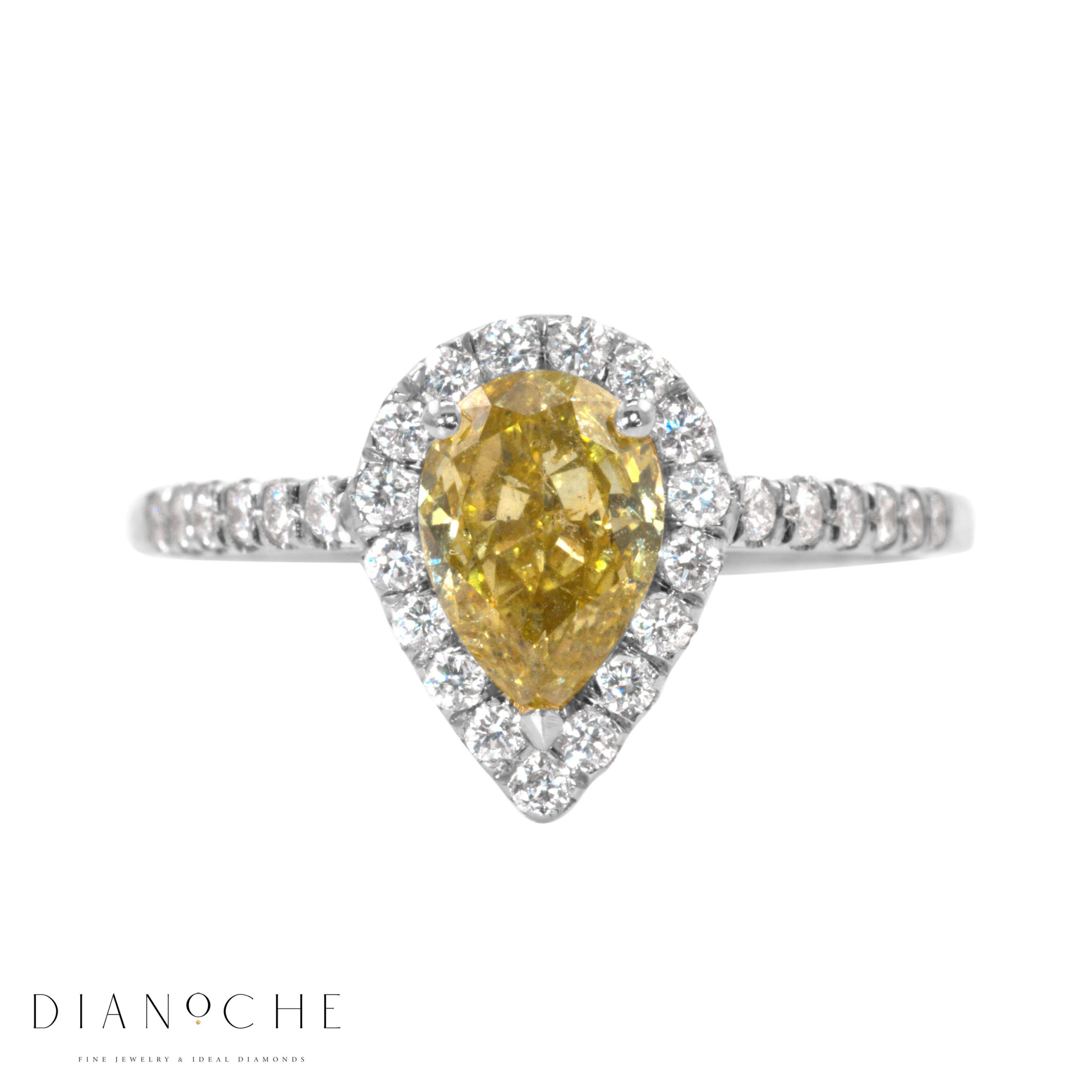 טבעת מזהב לבן מעוצבת עם יהלום צהוב בצורת טיפה