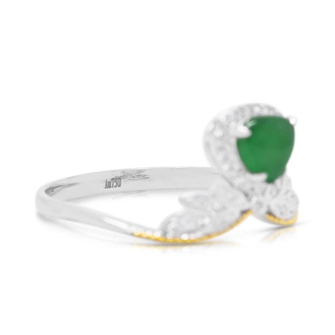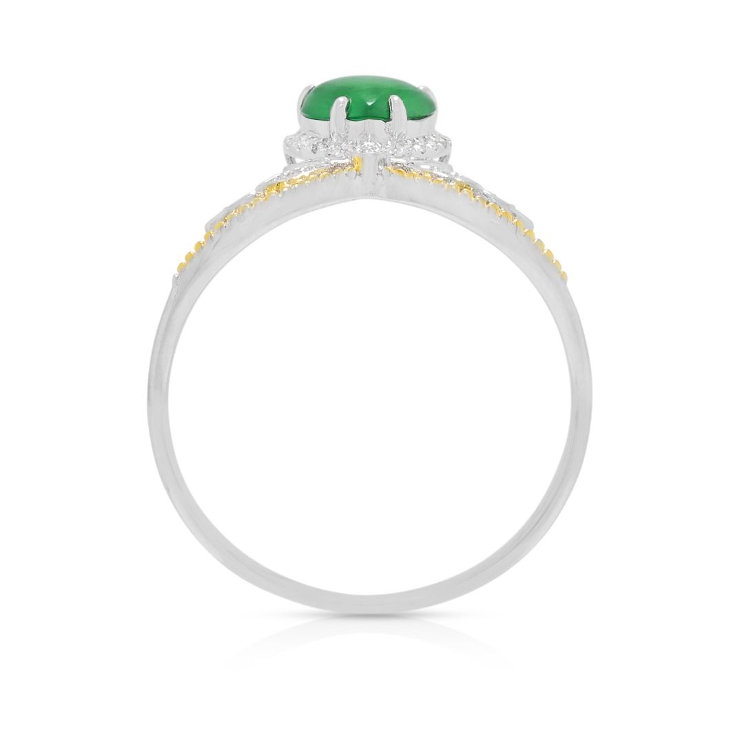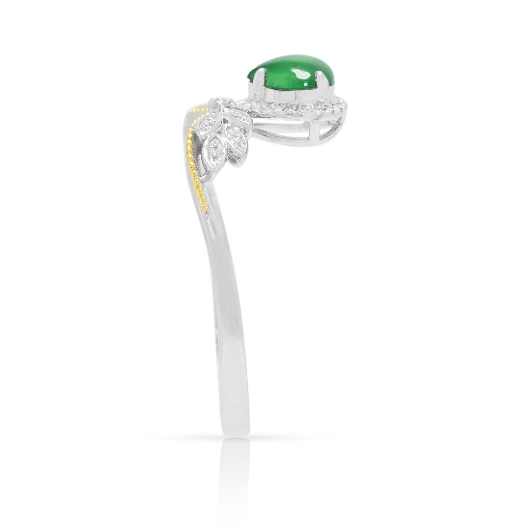 טבעת מעודנת מזהב דו-גוני 18 קראט, משובצת יהלום וג'ייד במשקל 0.15 קראט