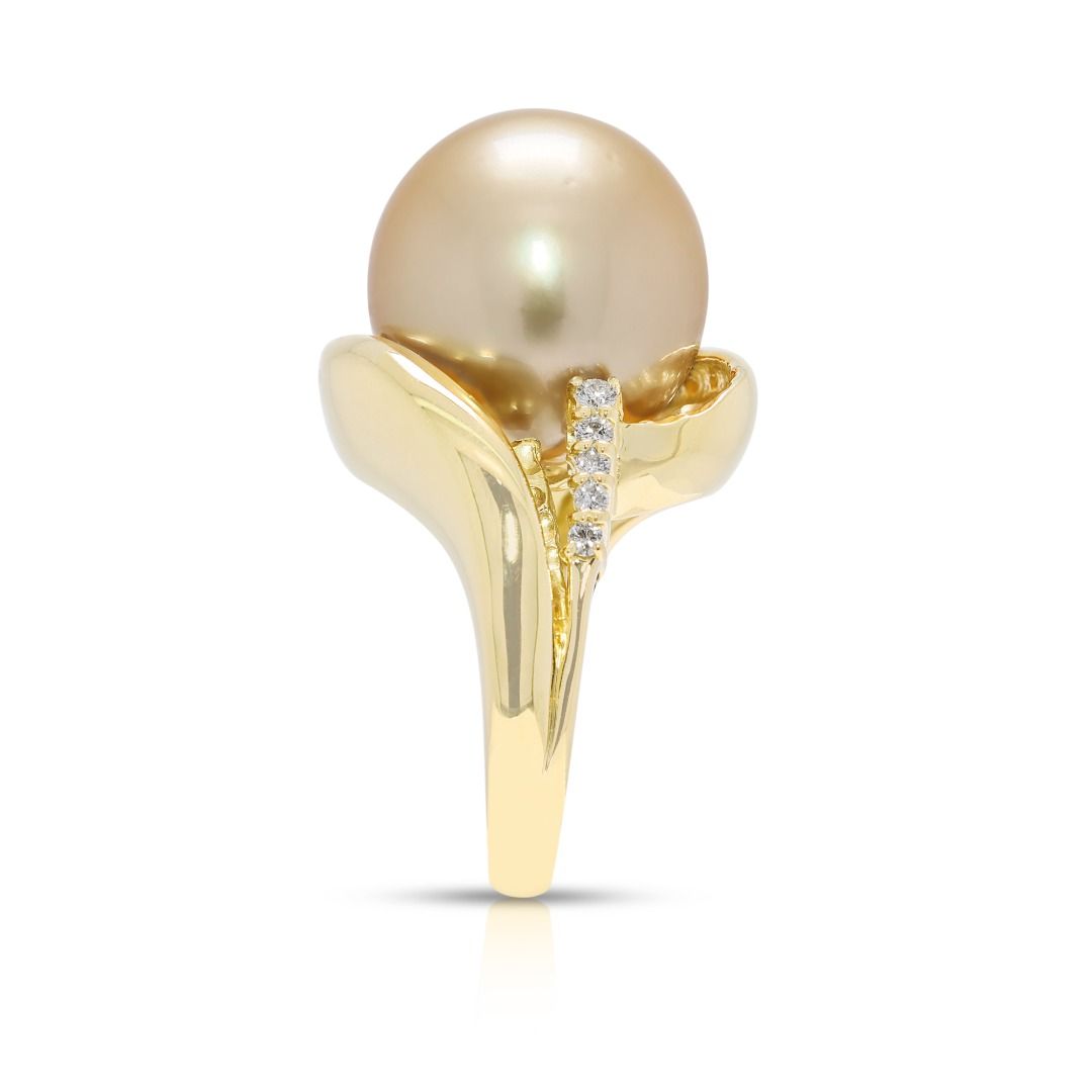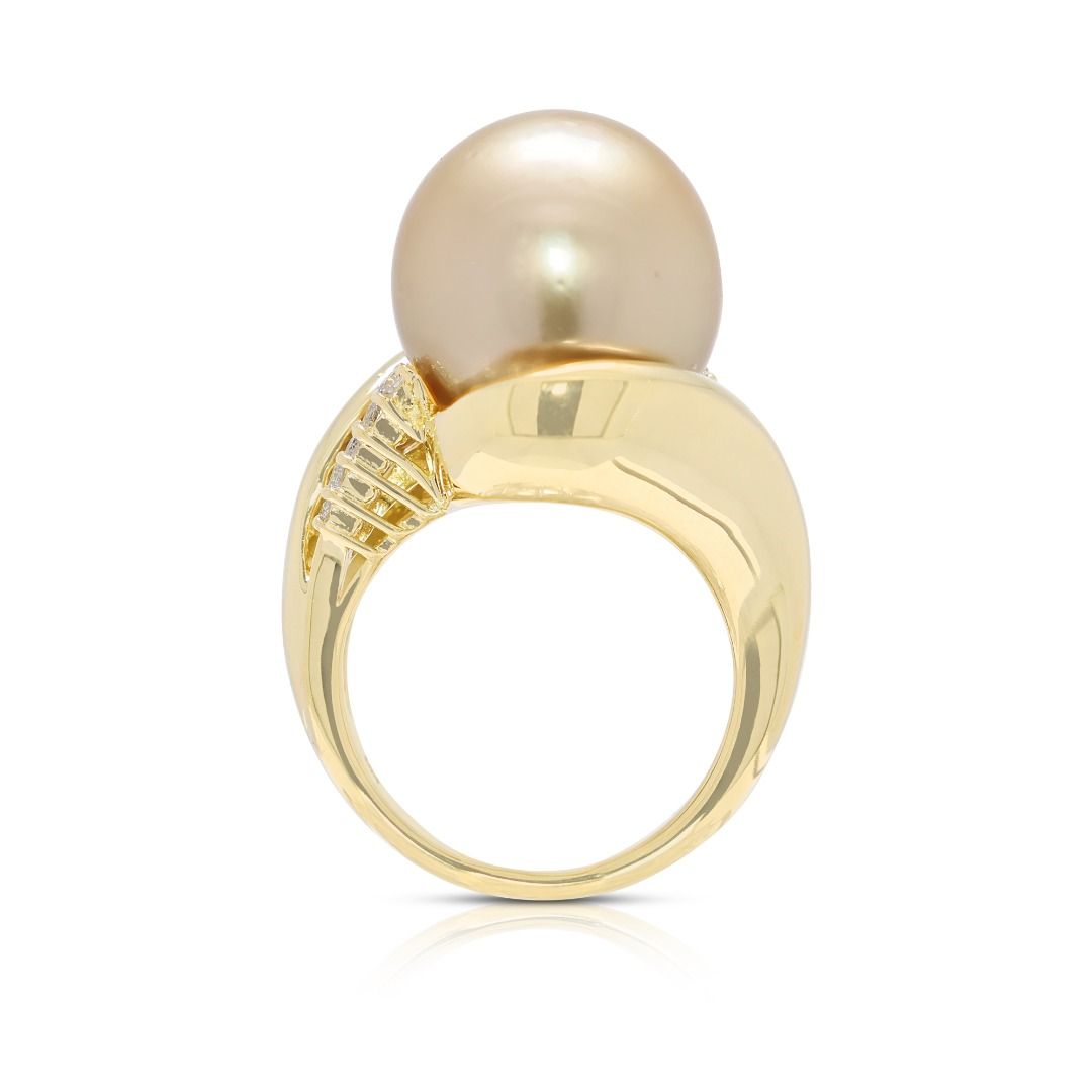 טבעת נוכחות אלגנטית עם פנינה זוהרת ודיאמנטים במשקל 15.17ct בזהב צהוב 18k – (חדשה ולא נענדה)