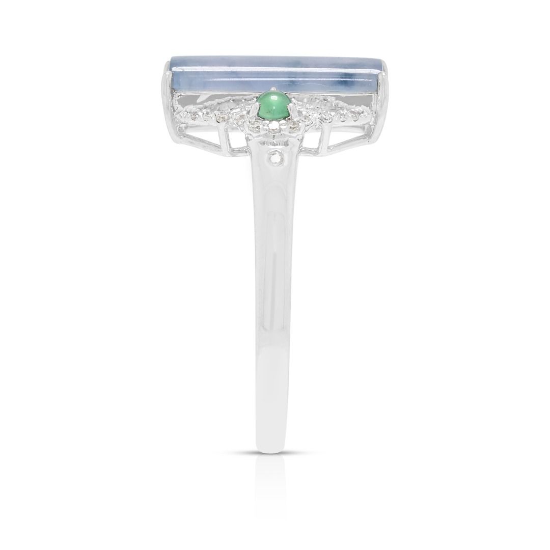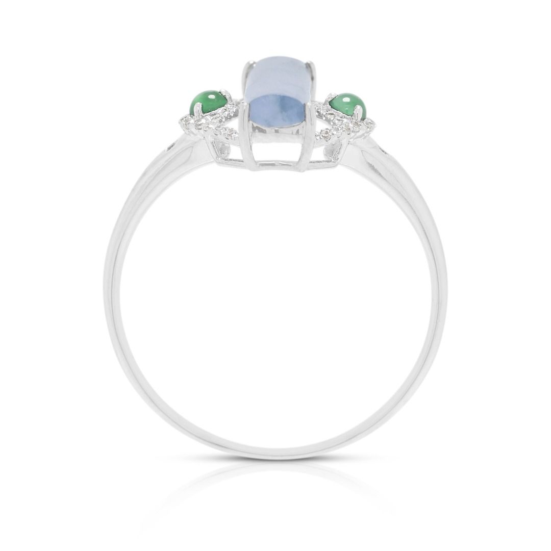 טבעת נוכחות ייחודית מג'ייד ויהלומים במשקל 0.11 קרט, בזהב לבן 18 קראט
