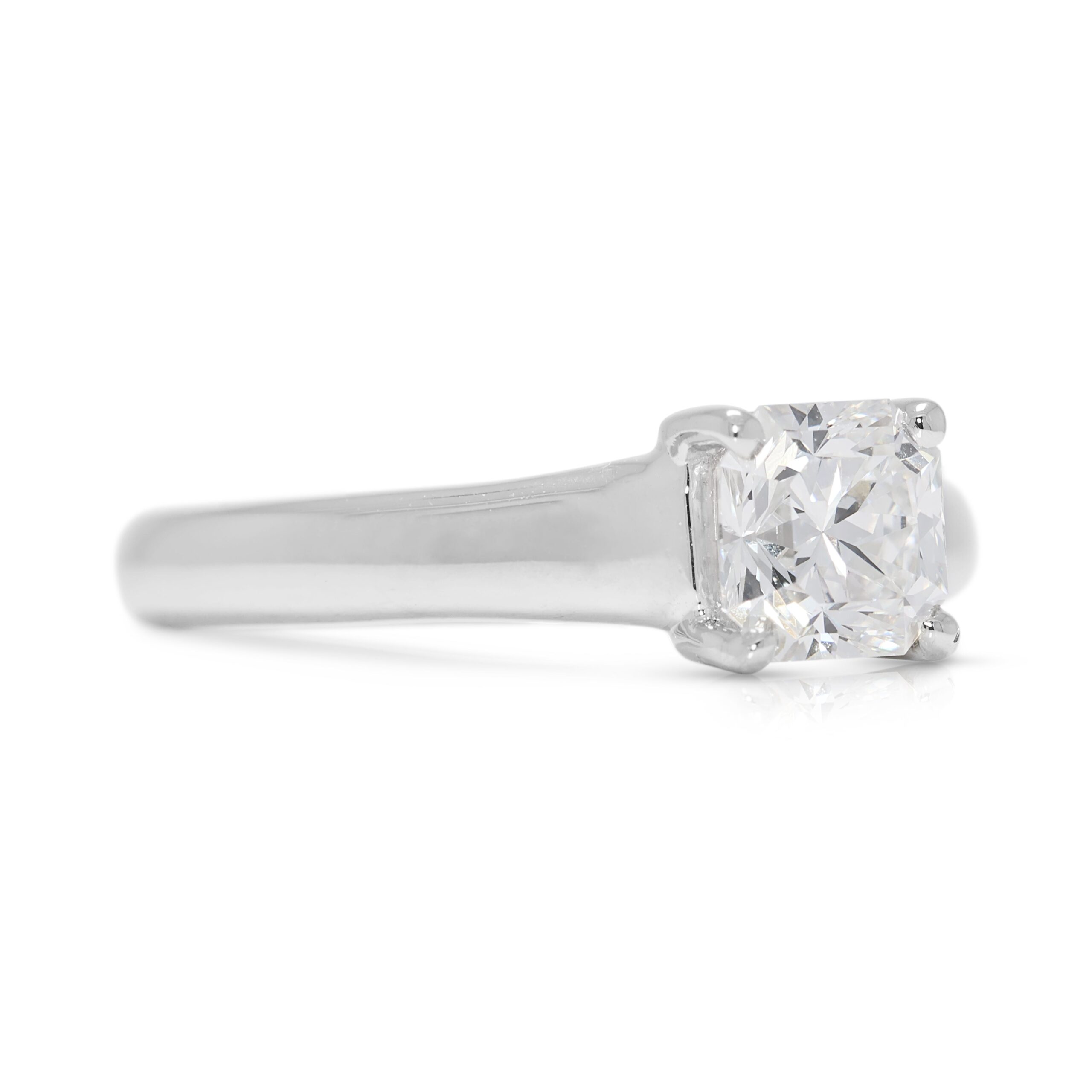 סמל נצחי לאלגנטיות, טבעת זו מציגה יהלום טבעי במשקל 0.74ct בחיתוך מרובע מעורב ייחודי עם פינות קטומות, המציע איזון מעודן בין ברק לדיוק גיאומטרי. מדורג בצבע E וניקיון VS1, היהלום מקרין טוהר וניצוץ יוצאי דופן, מה שהופך אותו למוקד שובה לב באמת. טבעת הפלטינה המלוטשת משפרת את זוהר האבן עם הברק הקריר והעמיד שלה, בעוד הגימור החלק והמלוטש מבטיח מראה מודרני אך קלאסי. במשקל 3.96g ובמידה Euro 48 / HK 9.25, טבעת זו גם מהותית וגם נוחה, עוצבה לענידה לכל החיים. עם האלגנטיות המאופקת ואיכות היהלום המרשימה שלה, היא בחירה מושלמת לאירוסין או לפריט אישי יקר ערך.
