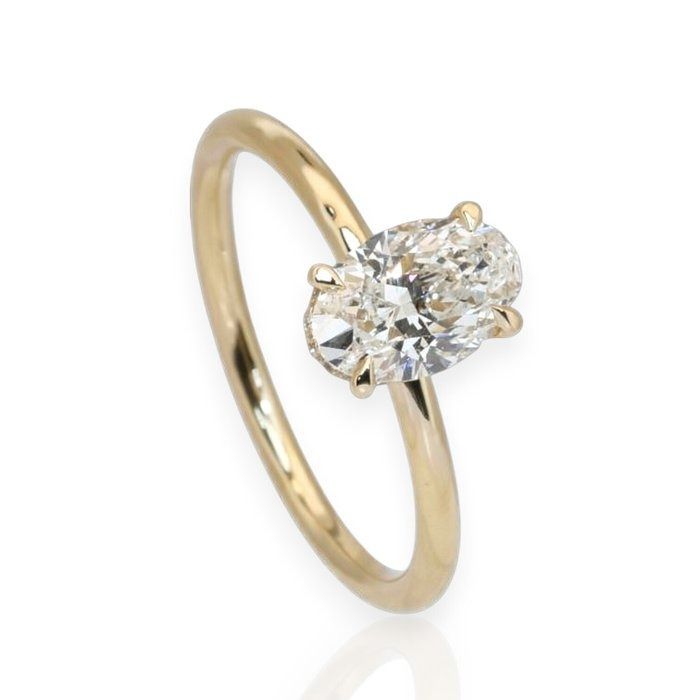 טבעת סוליטר יהלום 1.10 קראט GIA מתועדת עם יהלומים משלימים בזהב צהוב 18 קראט