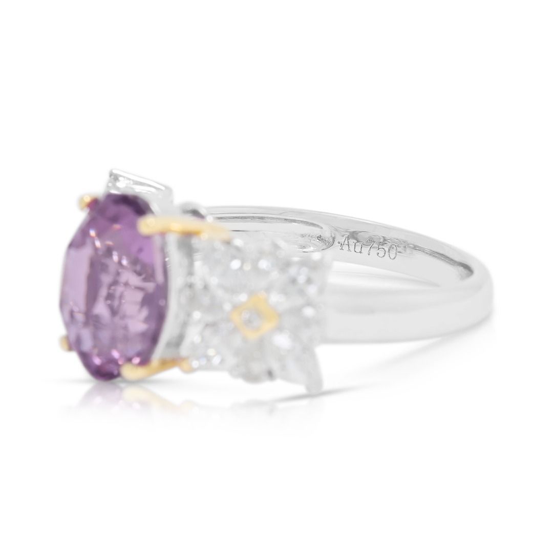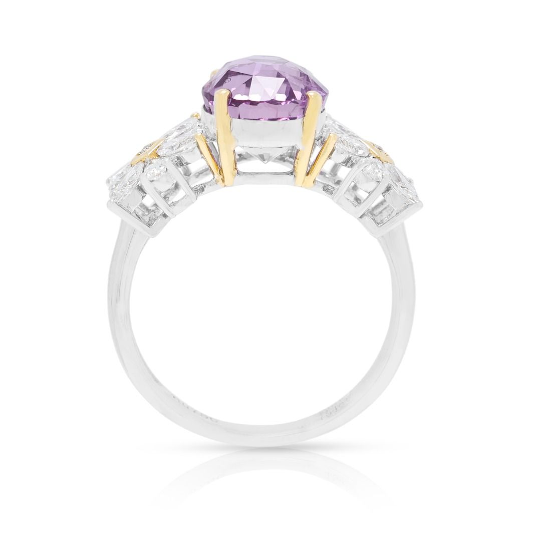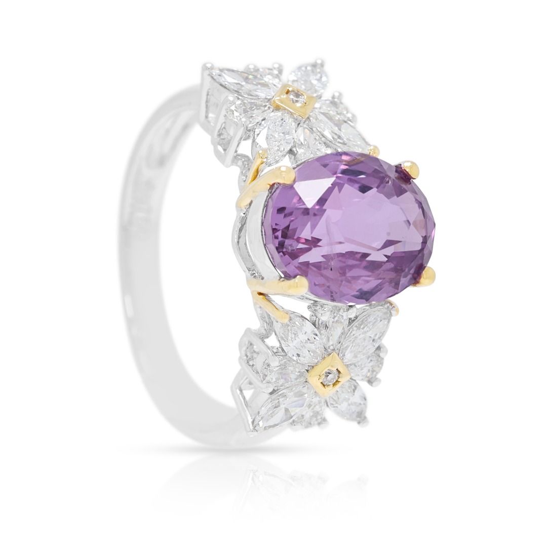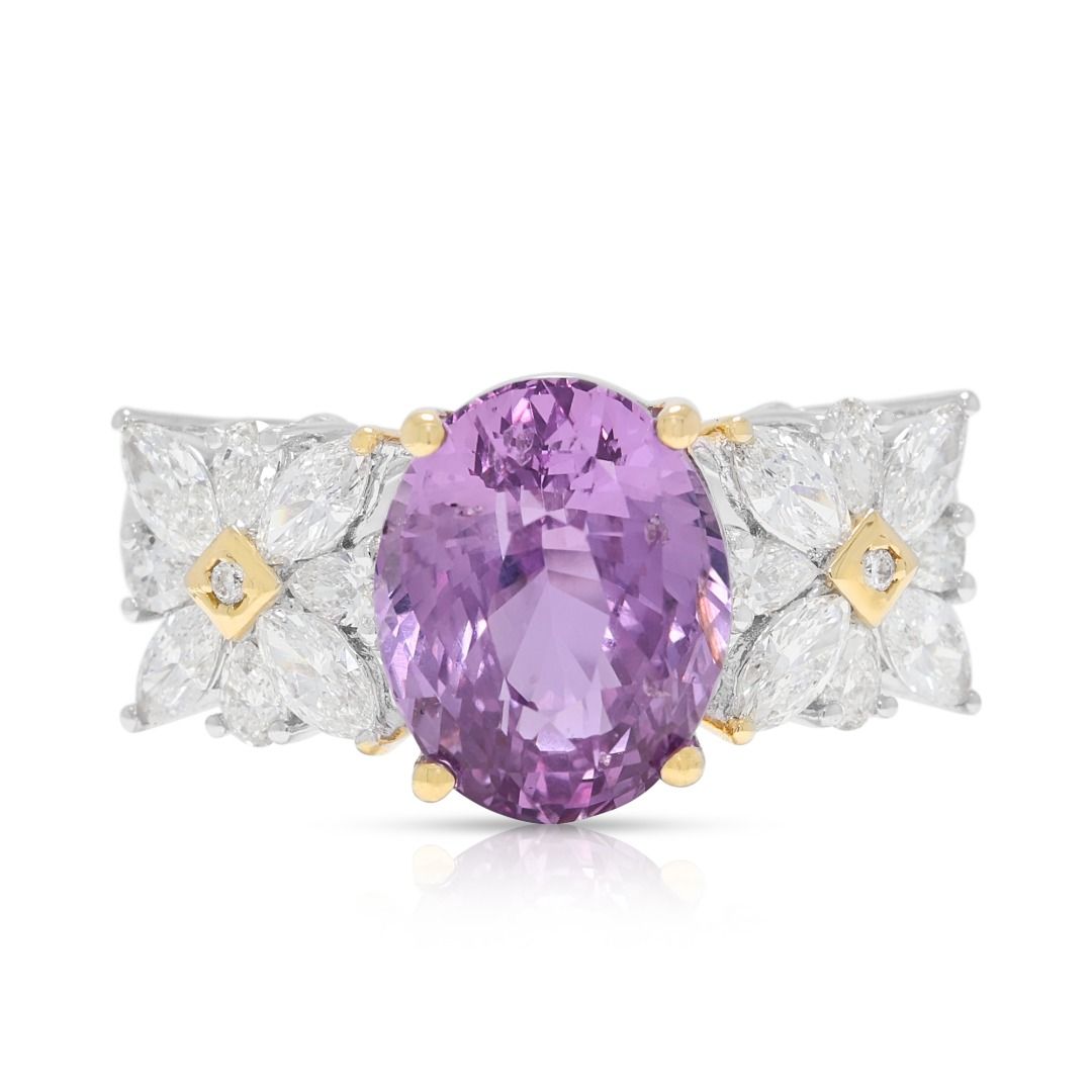 טבעת ספיר ורוד-סגול עז 4.54ct זוהרת בזהב דו-גוני 18K (חדש) – מתועדת GUILD