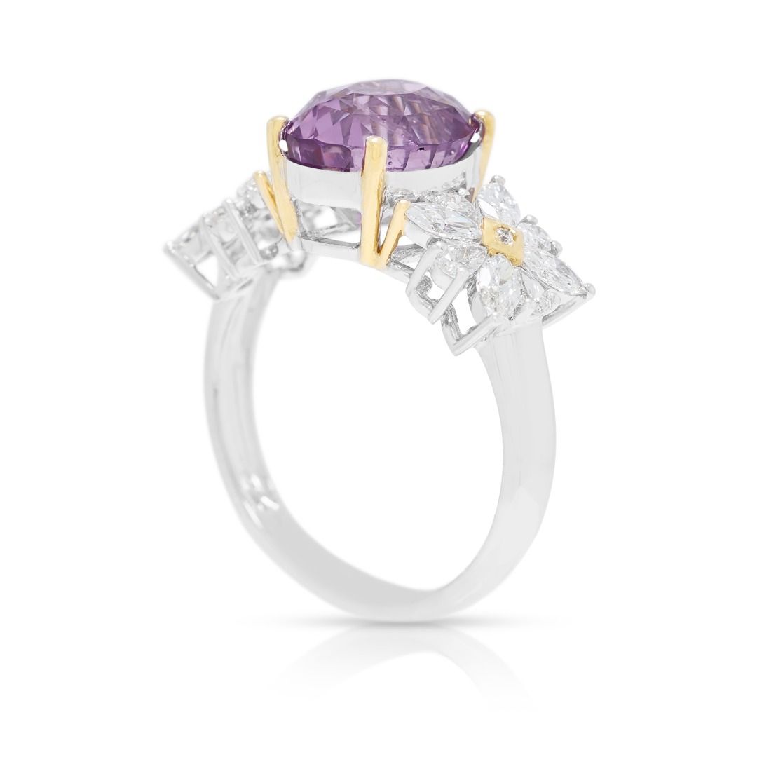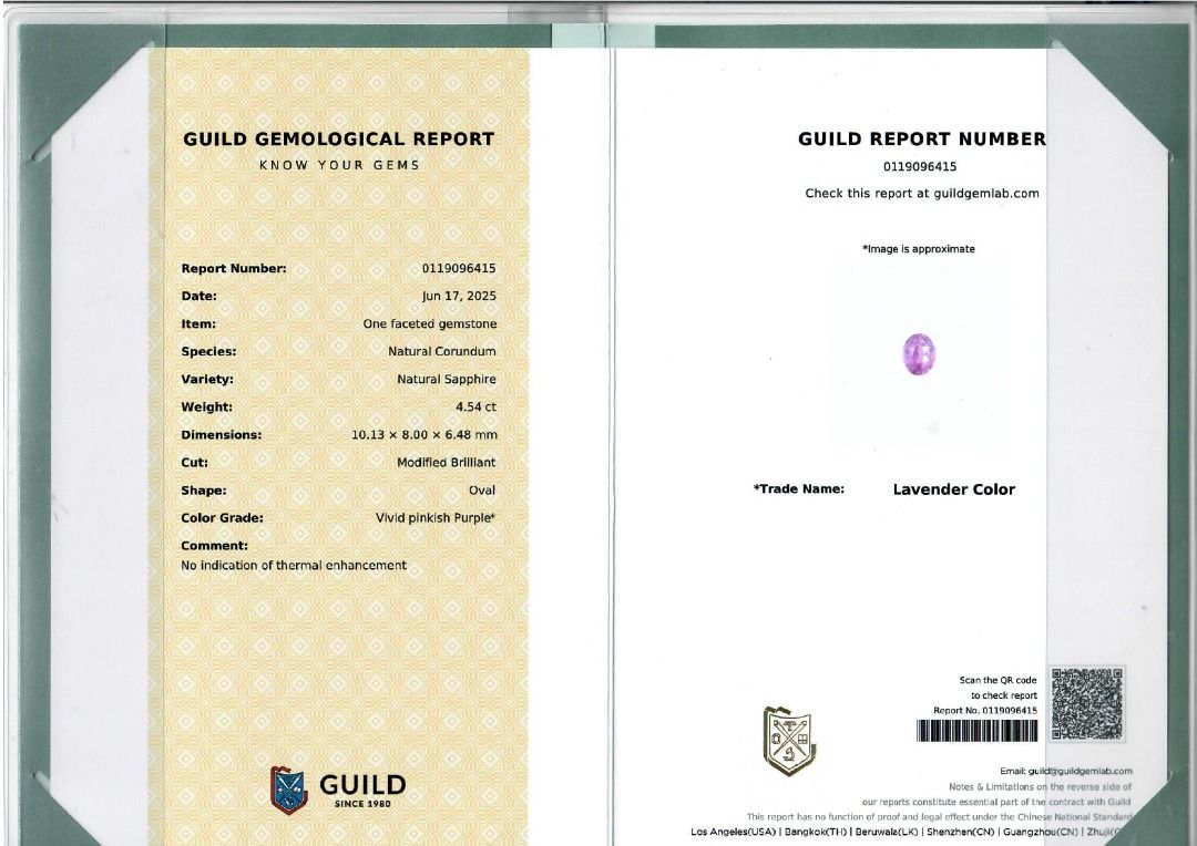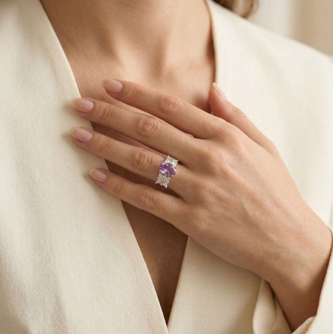 אוצר נדיר של צבע—טבעת זו מציגה ספיר יחיד בחיתוך אובל במשקל כולל של 4.54ct, הזוהר בגוון ורוד-סגול עז. עשויה מזהב דו-גוני אלגנטי 18K, משקלה 4.31g ומתאימה למידה 52EU / 13HK. תעודת GUILD כלולה, המבטיחה אותנטיות ואיכות. פריט חדש ורענן המשלב חיוניות אבן חן בולטת עם אומנות מעודנת—מושלם לאספנים, למתנת ציון דרך, או להוספת אמירה נועזת של יוקרה לכל סגנון.