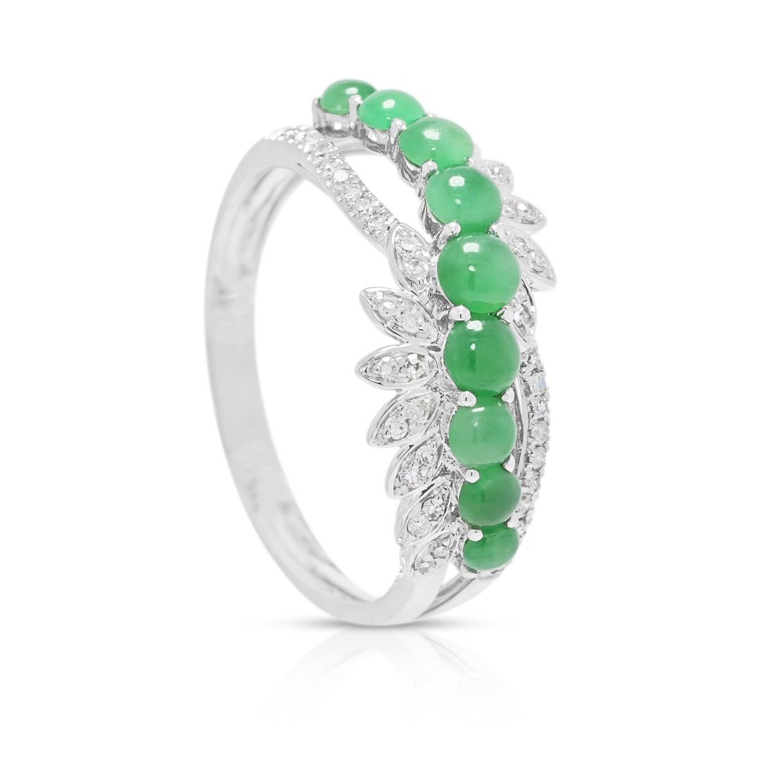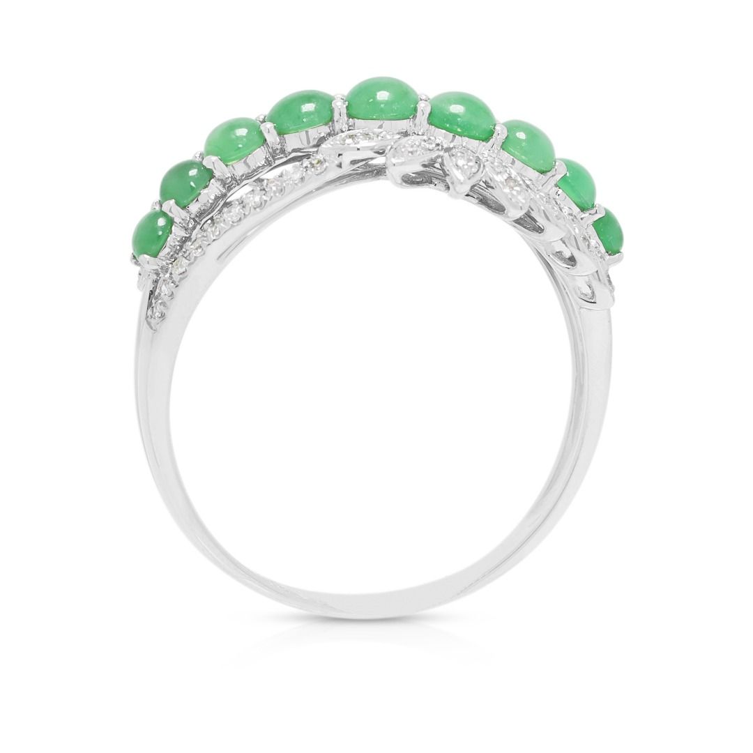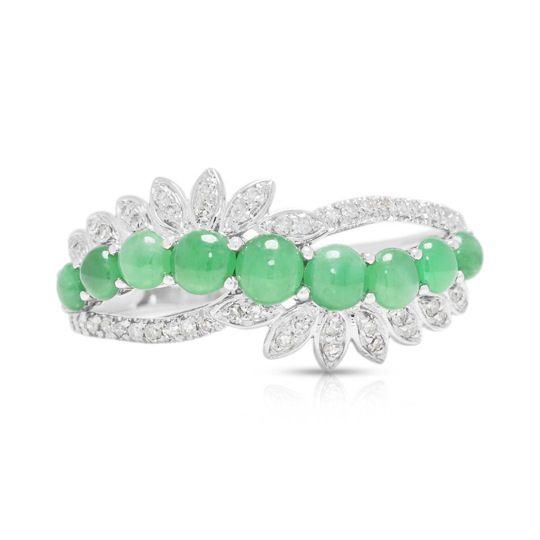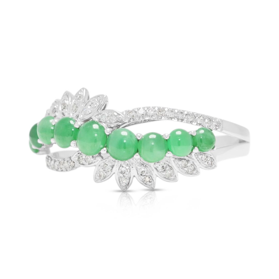 טבעת עדינה עם יהלומים ואבן ג'ייד בחיתוך קבושון במשקל 0.24 קראט, בזהב לבן 18 קראט