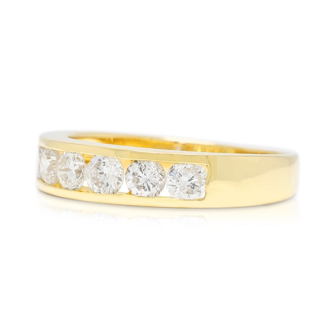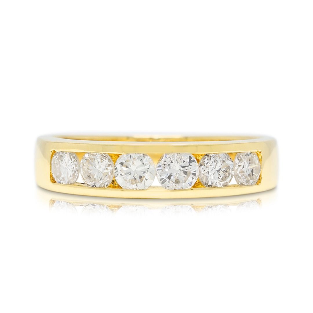 טבעת ערוץ קלאסית מזהב צהוב 18K, משובצת יהלומים טבעיים בחיתוך עגול מבריק במשקל 0.52 קראט