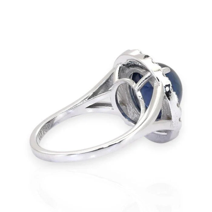 טבעת קוקטייל יוקרתית GIA עם ספיר 7.32ct ויהלומים, מזהב לבן 18k