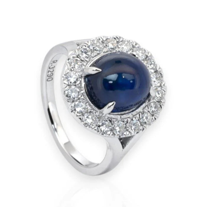 סביב אבן חן מלכותית זו משובצים 18 יהלומים עגולים בחיתוך בריליאנט, במשקל כולל של 0.85ct, המוסיפים ניצוץ מסנוור וניגוד מעודן. משובצת בזהב לבן יוקרתי 18K ובמשקל 7 גרם, יצירה זו מציעה נוכחות ותחכום כאחד. מתועדת על ידי GIA, טבעת זו היא אוצר נדיר שנועד להימסר מדור לדור!
