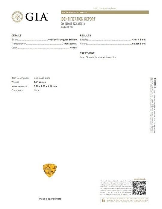 יצירת מופת אמיתית של אלגנטיות, טבעת זו מזהב צהוב 14 קראט מציגה בריל צהוב משולש נדיר ותוסס במשקל 1.91 קרט. גוון הזהב החם שלה מועצם להפליא על ידי הילה מרהיבה של 51 יהלומים עגולים במשקל 0.70 קרט, היוצרים ניגוד וברק מעודנים. אוצר זה, GIA מתועד, הוא הצהרה מרהיבה של יוקרה ועידון.