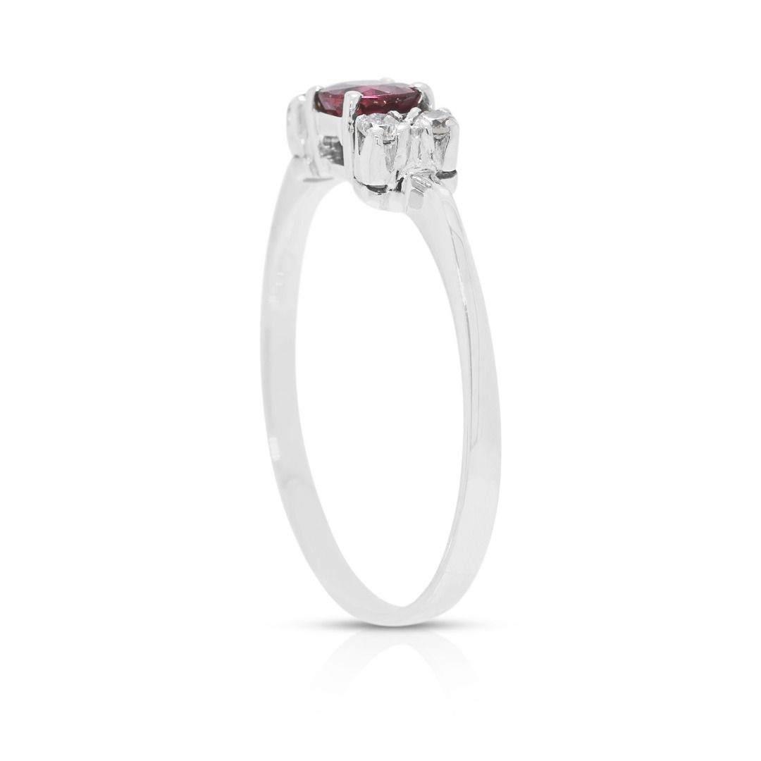 טבעת רובי ויהלומים מעודנת 0.23ct בזהב לבן 18K