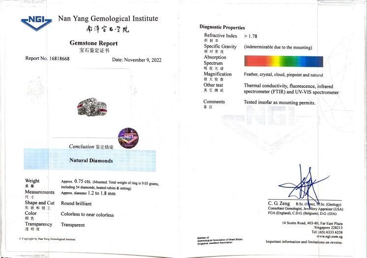 תעודה המפרטת את כל המאפיינים של התכשיט -