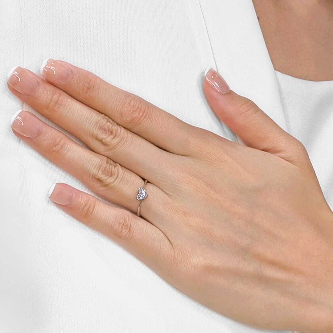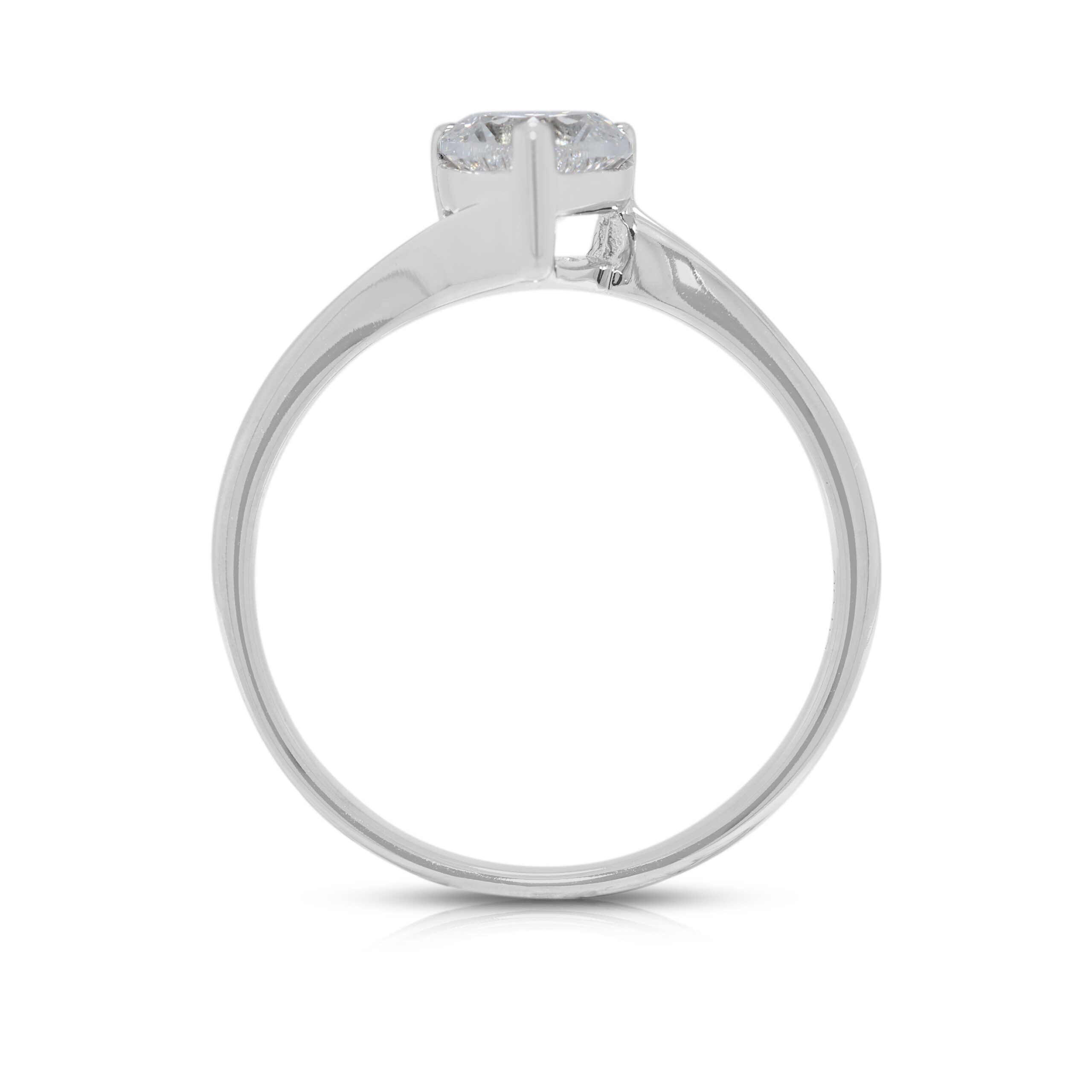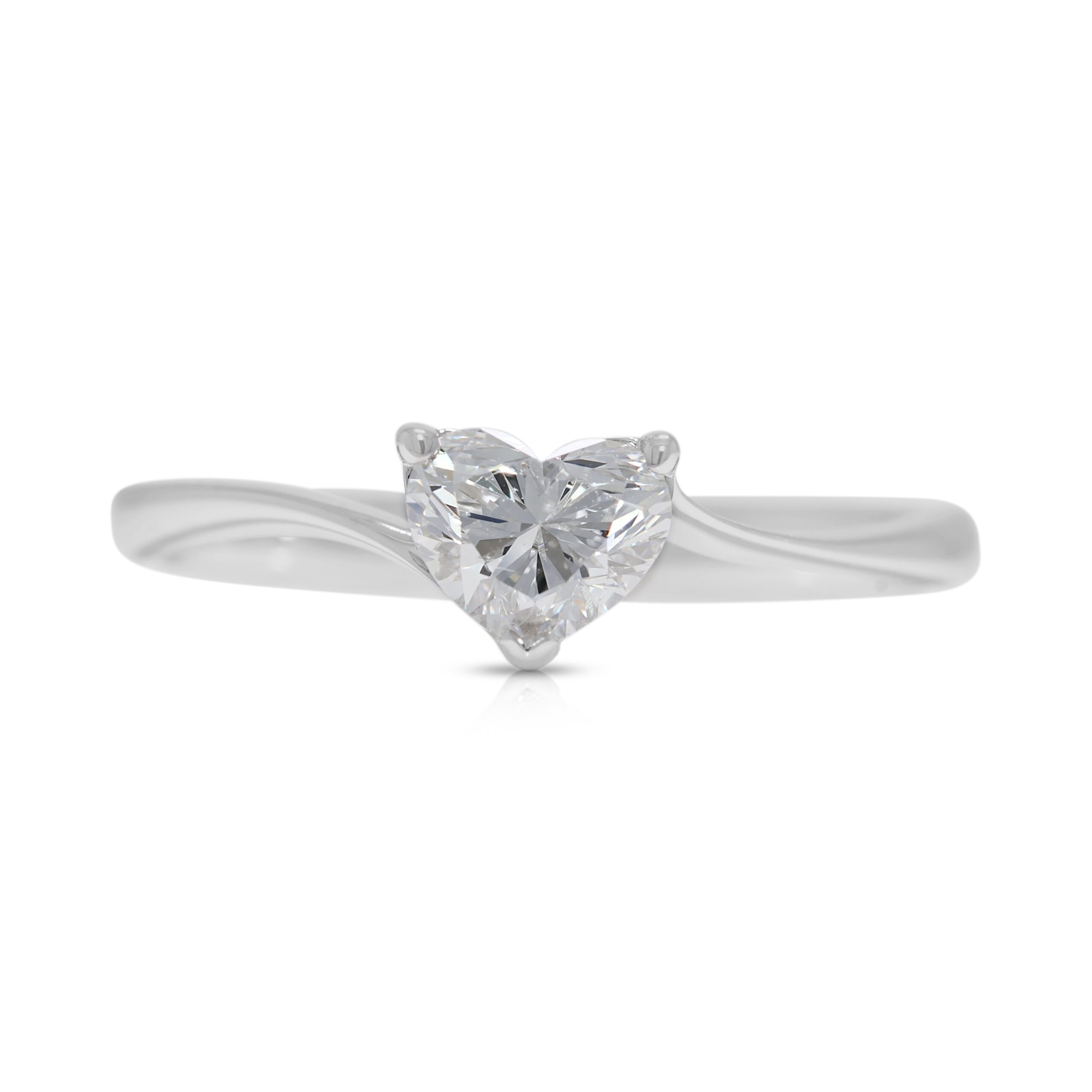טבעת רומנטית מזהב לבן 18 קראט, משובצת יהלום טבעי בחיתוך לב במשקל 0.50 קראט – מתועדת GIA
