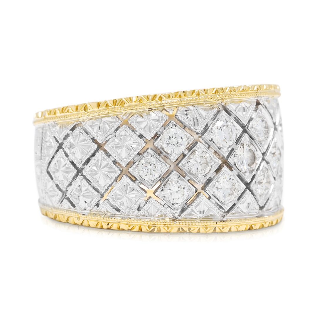 טבעת רשת יוקרתית מזהב דו-גוני 18 קראט, משובצת יהלום 0.32 קראט