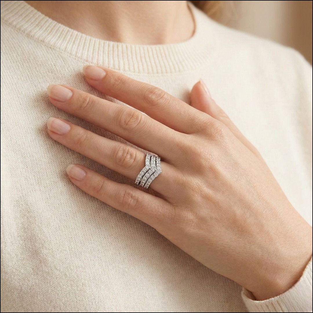 טבעת שברון רב-שורתית יהלומים מסנוורת 1.56 קראט בזהב לבן 18 קראט
