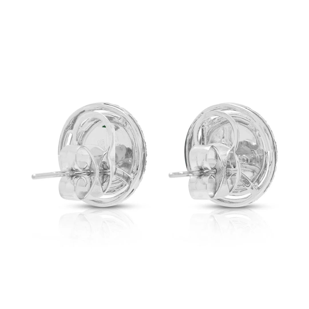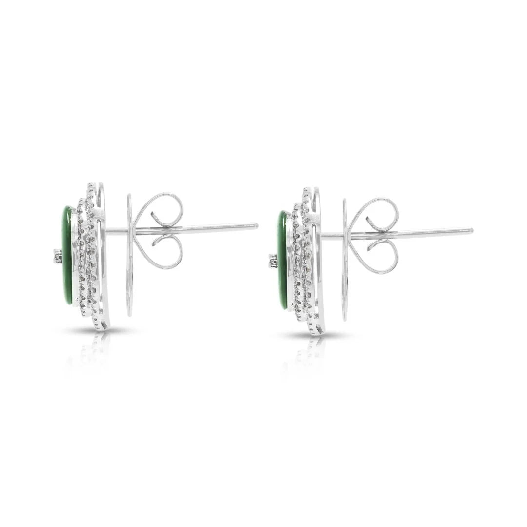 עגילים צמודים יוקרתיים עם ג'ייד 0.39 גרם ויהלומים 0.60 קראט בהילה כפולה בזהב לבן 18 קראט