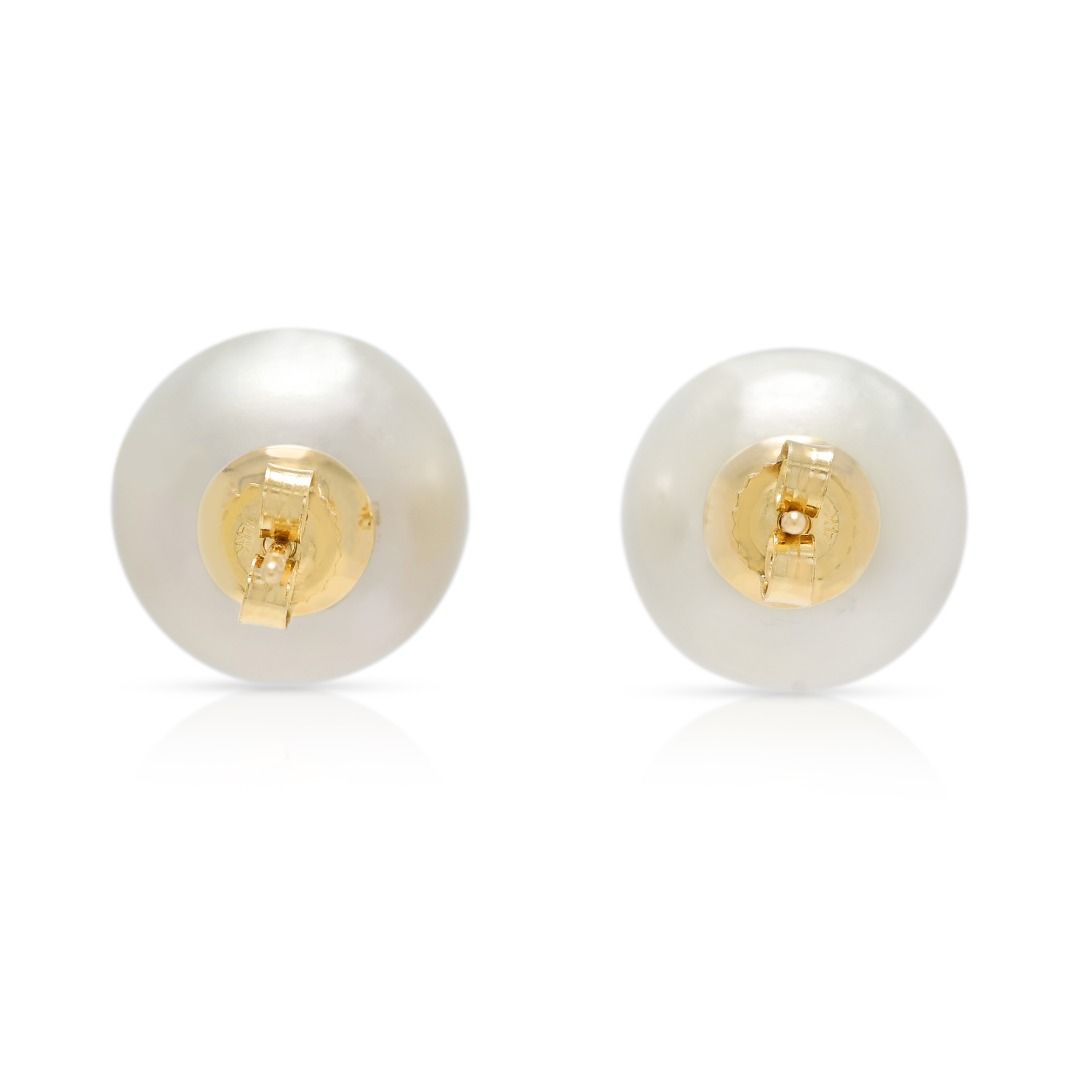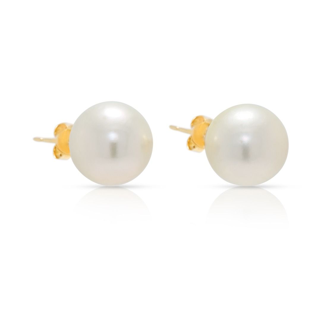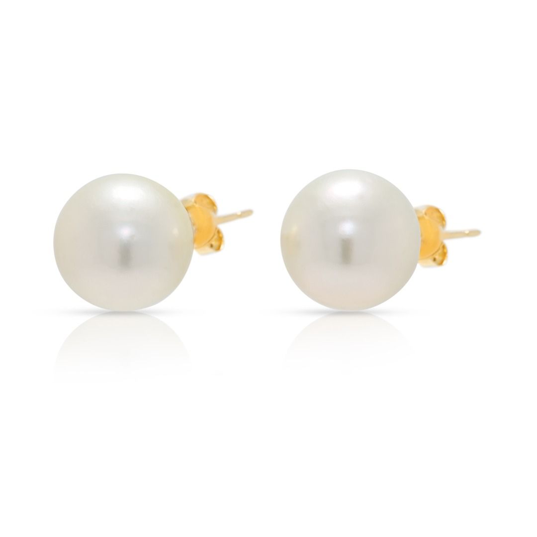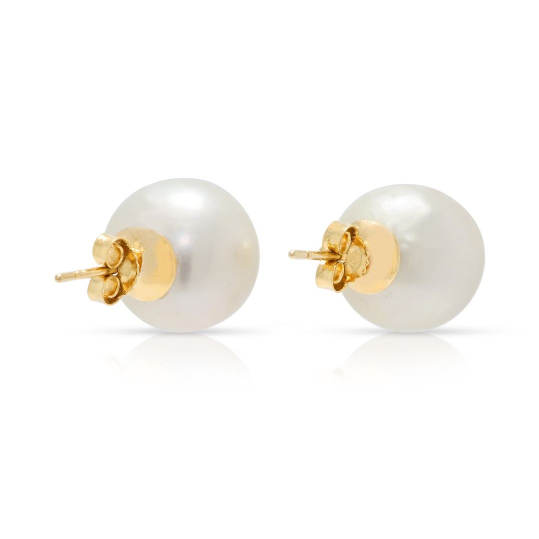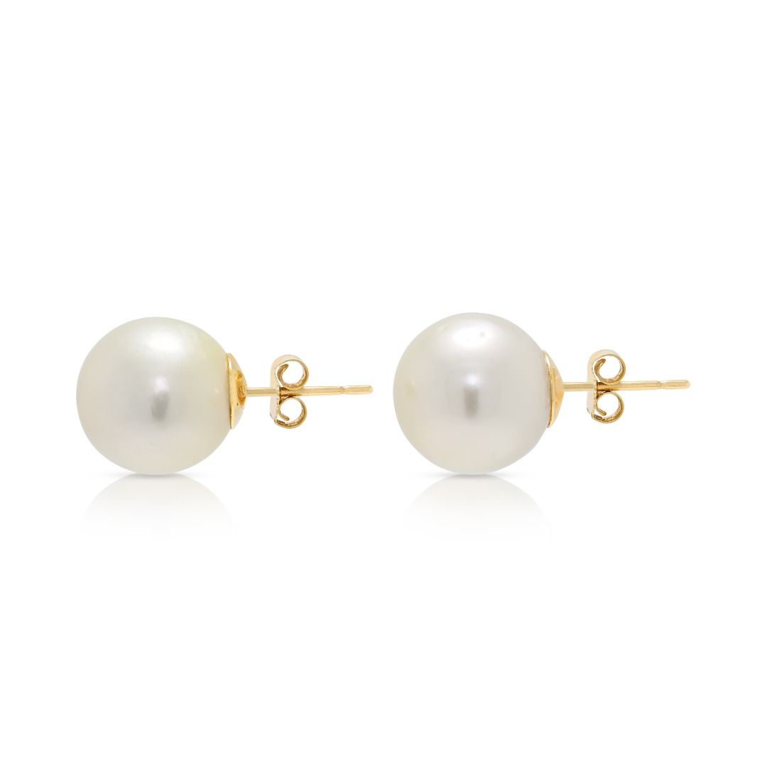 עגילים צמודים קלאסיים עם פניני ים הדרומי בקוטר 12.5 מ"מ בזהב צהוב 14 קראט