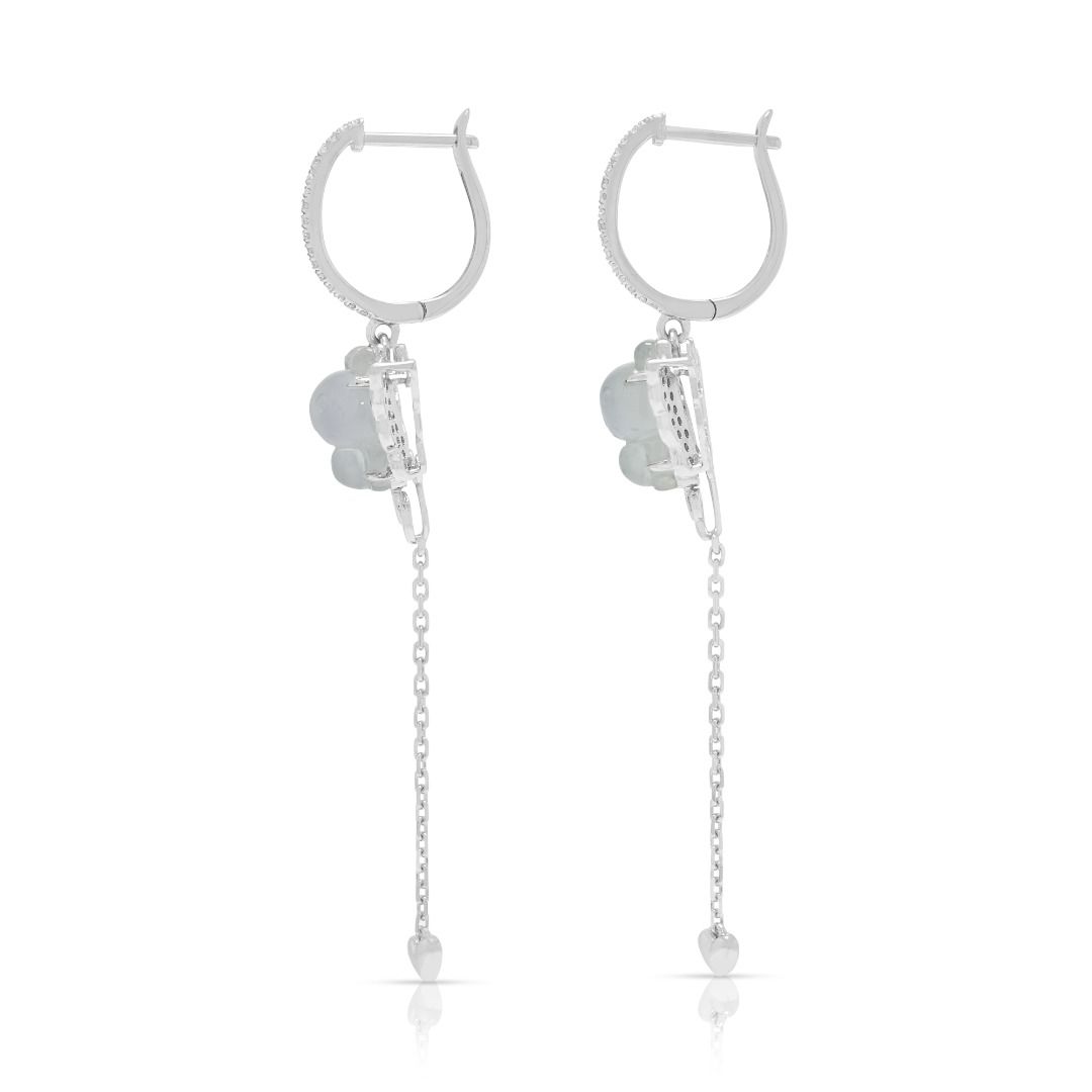עגילים תלויים שובבים מיהלומים במשקל 0.24ct, ג'ייד וספיר בזהב לבן 18K