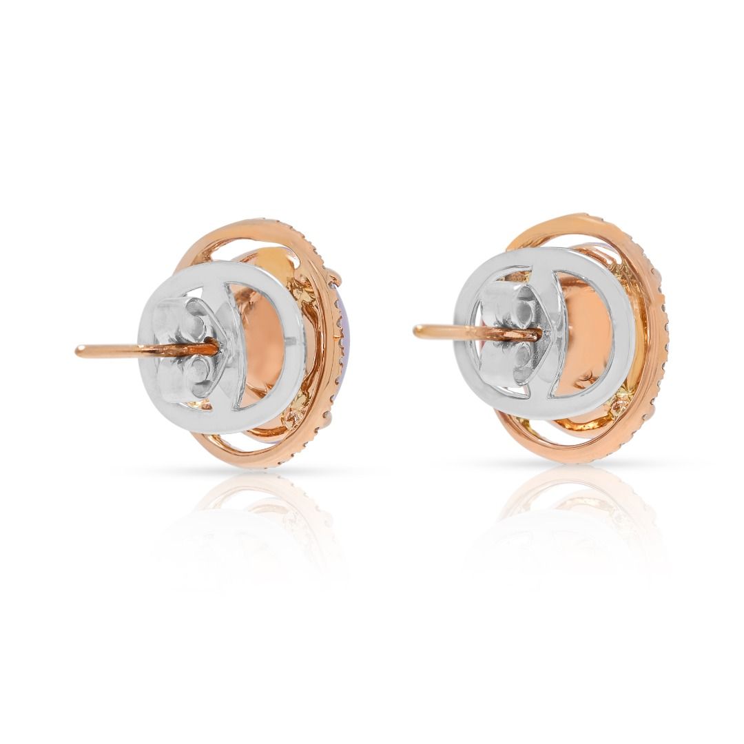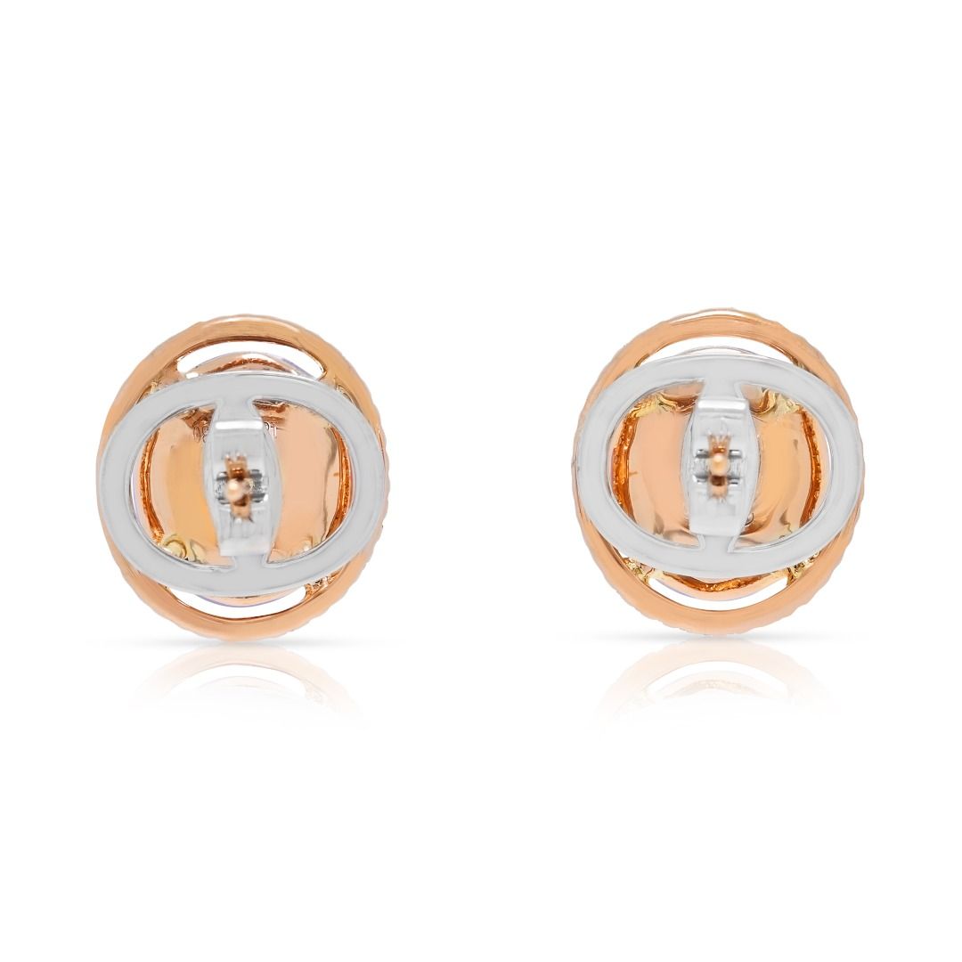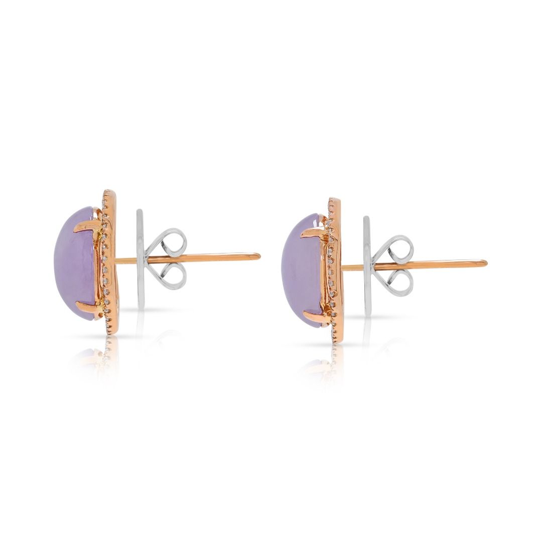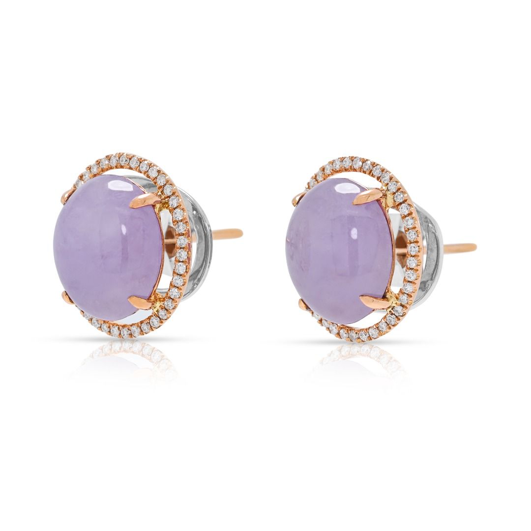 עגילי ג'ייד קבושון צמודים אלגנטיים עם הילת יהלומים טבעיים במשקל 0.24 קראט, בזהב דו-גוני 18 קראט