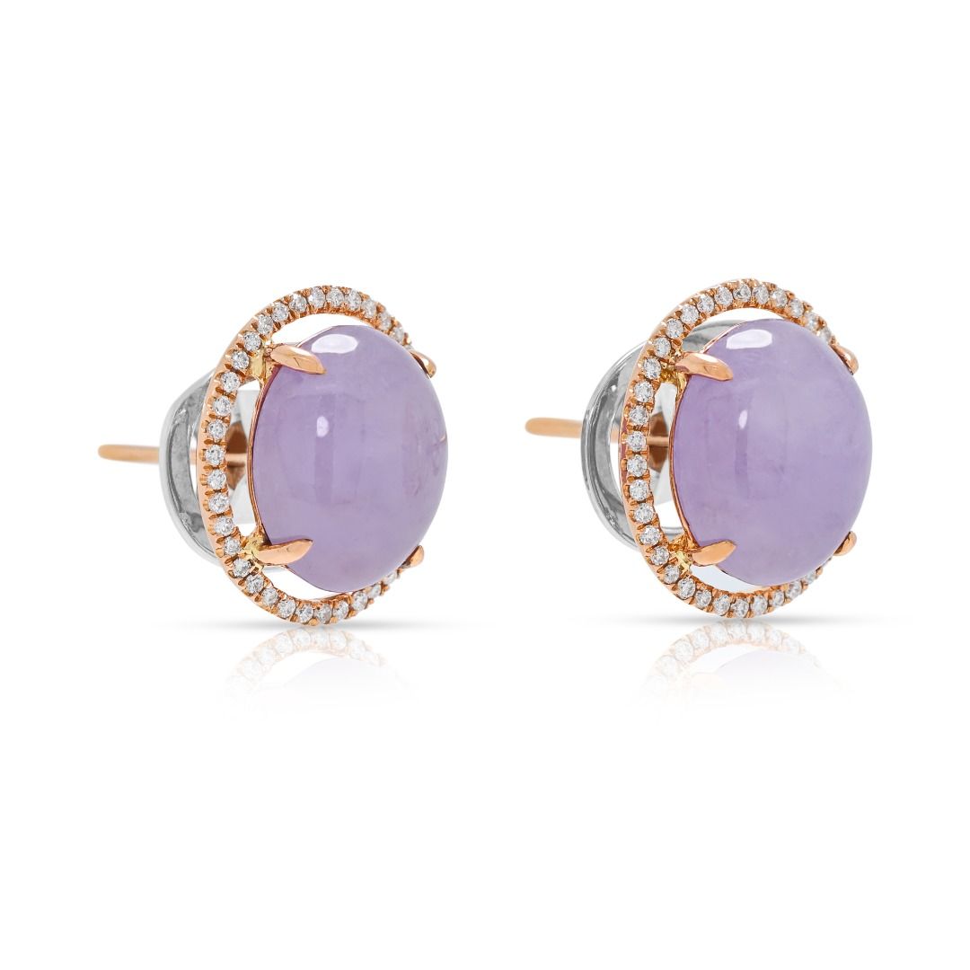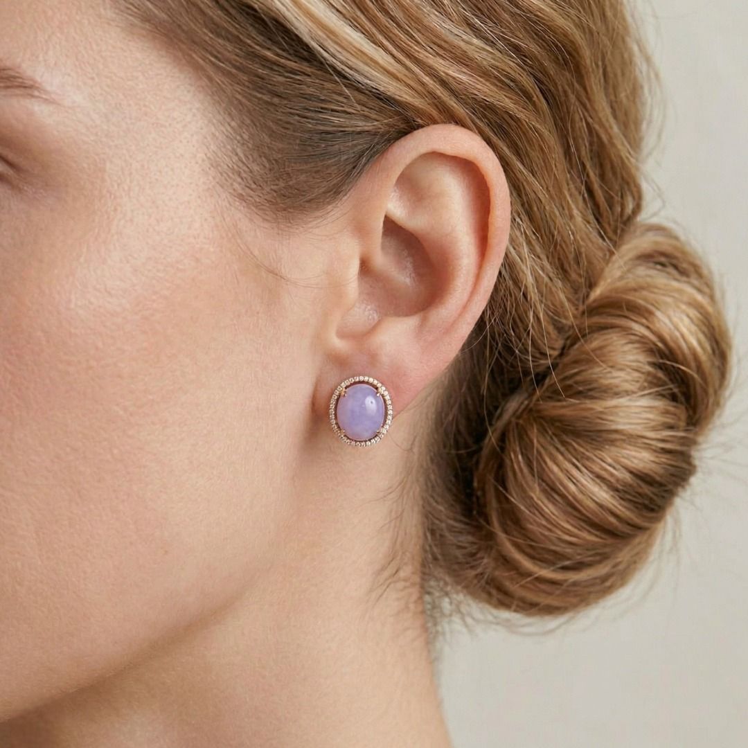 רכים, חלומיים ושובים לב ללא עוררין – עגילי ג'ייד לבנדר אלה מביאים נגיעת צבע עדינה עם טוויסט יוקרתי. כל אבן ג'ייד קבושון ממוסגרת להפליא בהילת יהלומים טבעיים נוצצת, המוסיפה בדיוק את מידת הברק הנכונה מבלי להאפיל על קסמה השלו. הגימור החלק והמבריק של הג'ייד מנוגד באופן מושלם לנצנוץ העדין של יהלומים בצבע G-H, ויוצר מראה מאוזן ומעודן. משובצים בזהב דו-גוני 18 קראט, עגילים צמודים אלה הם שיקיים ללא מאמץ – מושלמים להוספת אמירה עדינה לאלגנטיות היומיומית שלך.