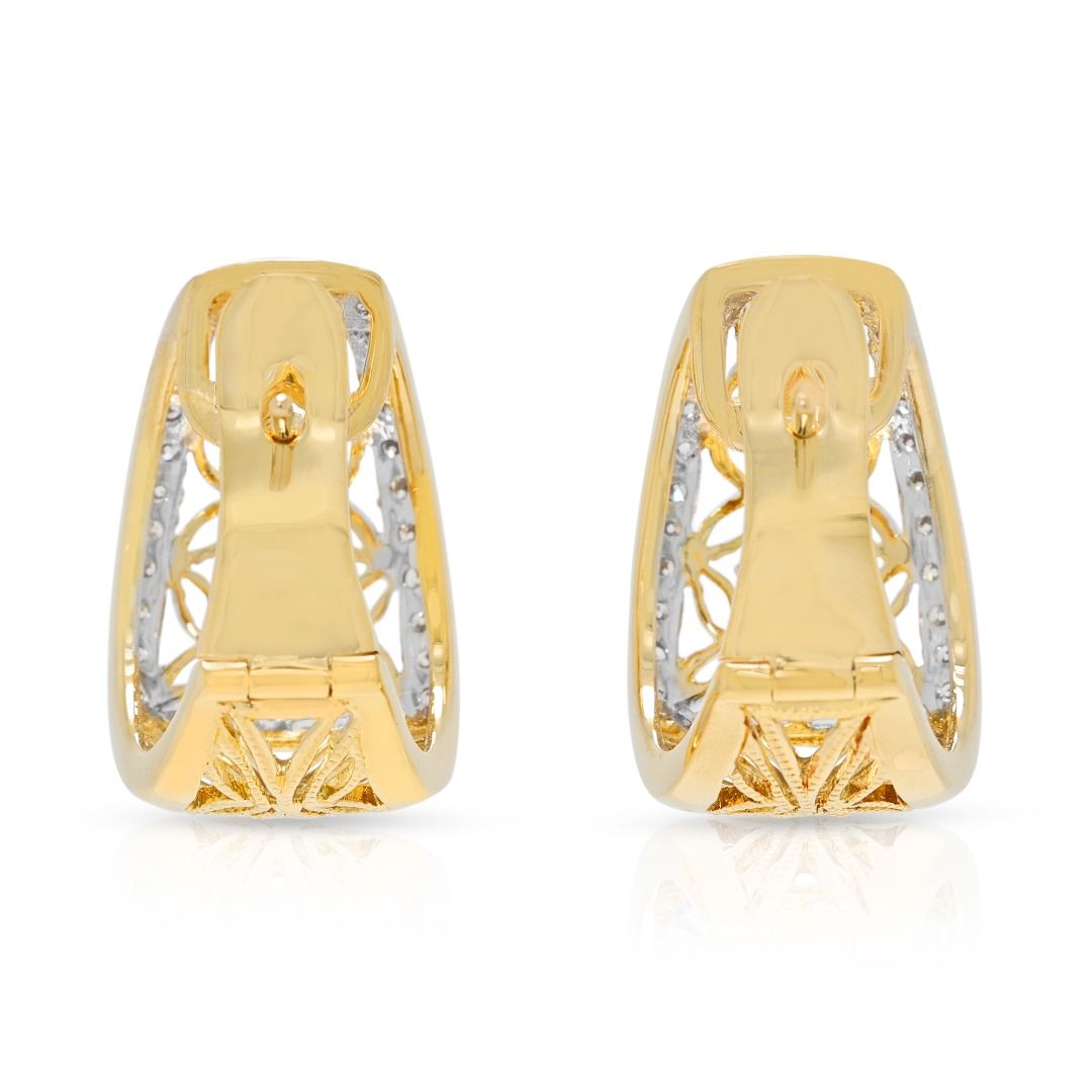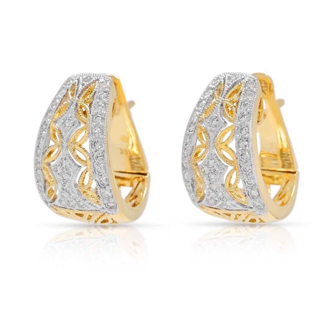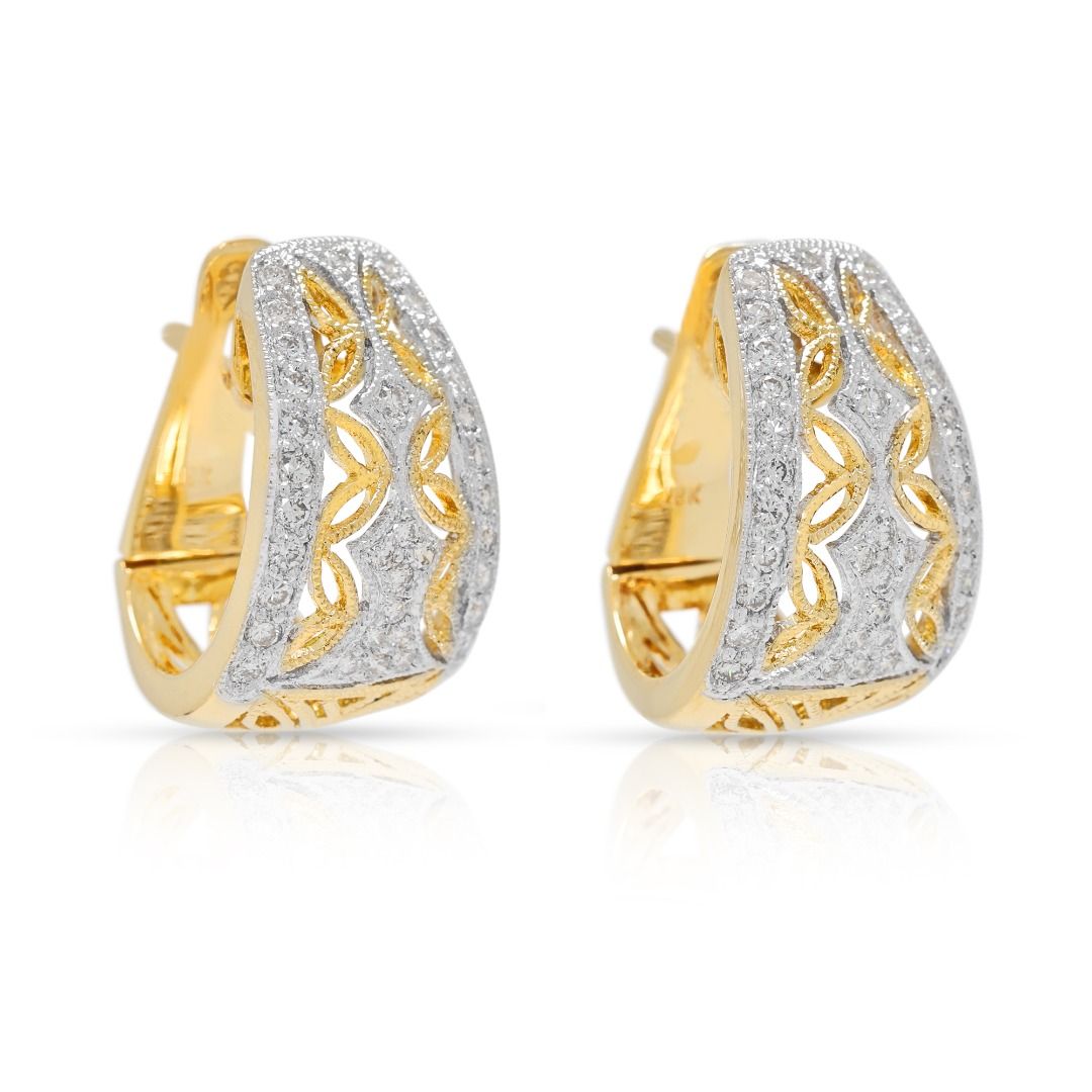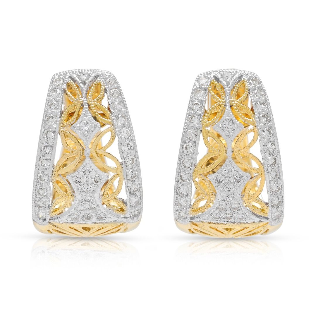 עגילי חישוק וינטג' מרשימים מזהב דו-גוני 18 קראט, משובצים ביהלומים טבעיים במשקל 1.02 קראט