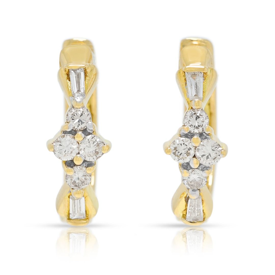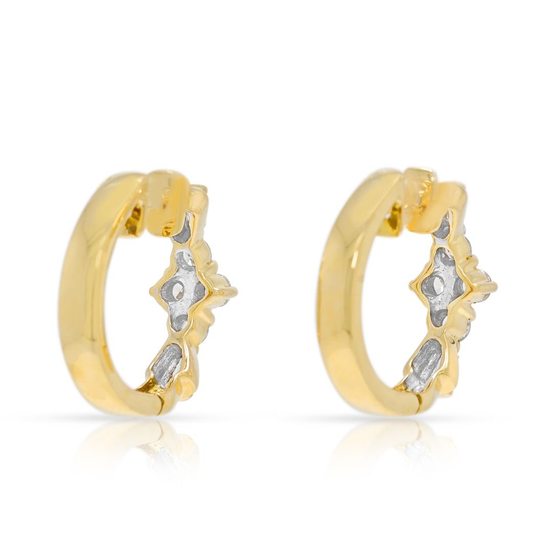 עגילי חישוק יהלומים אלגנטיים במשקל 0.28 קרט בזהב דו-גוני 18 קראט