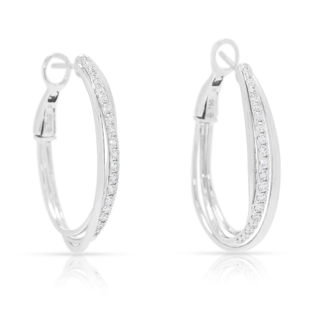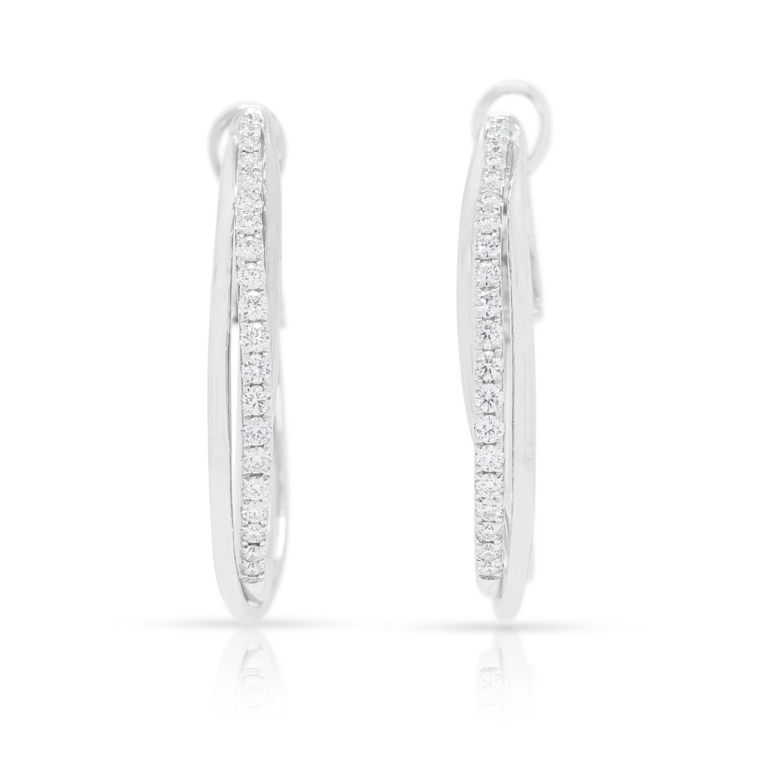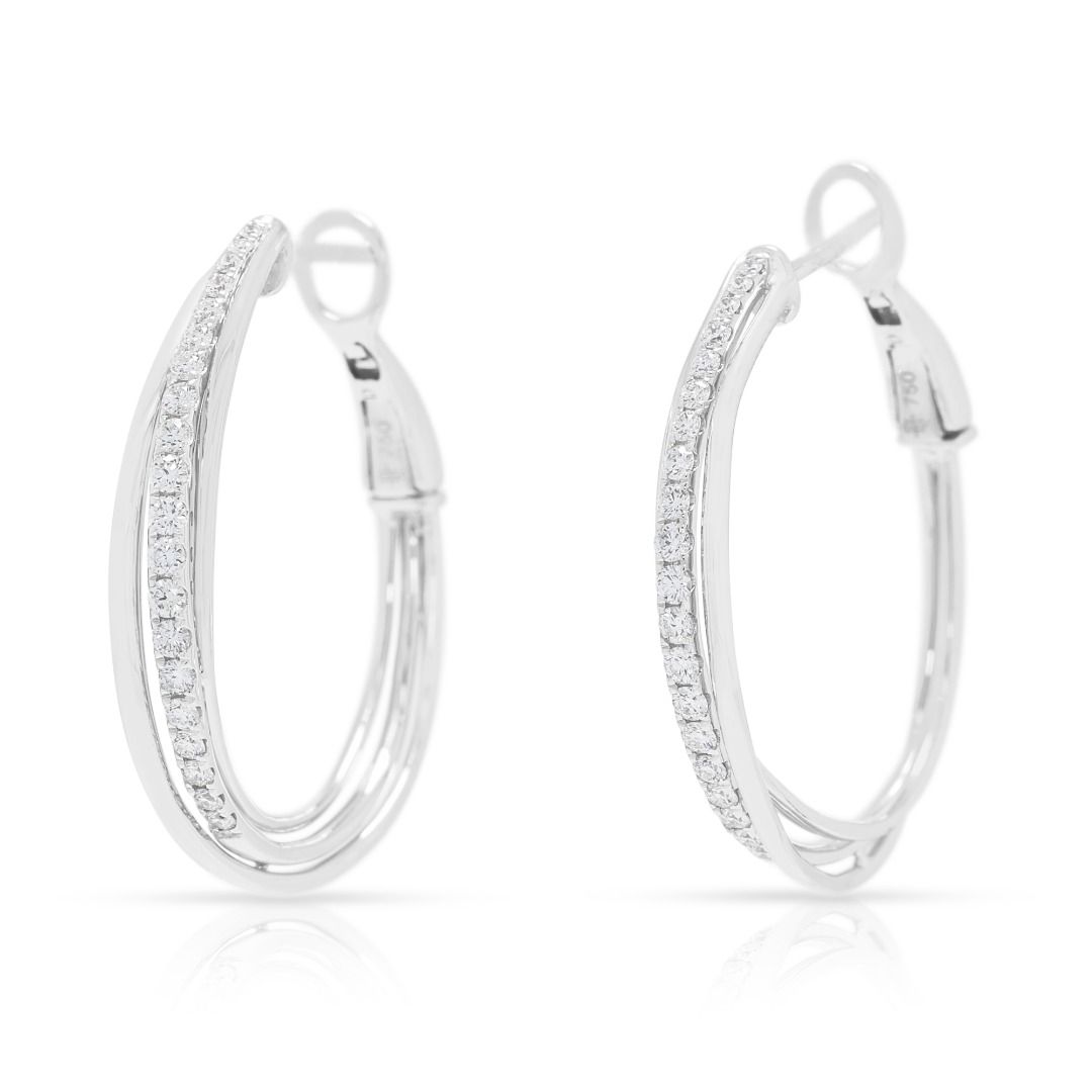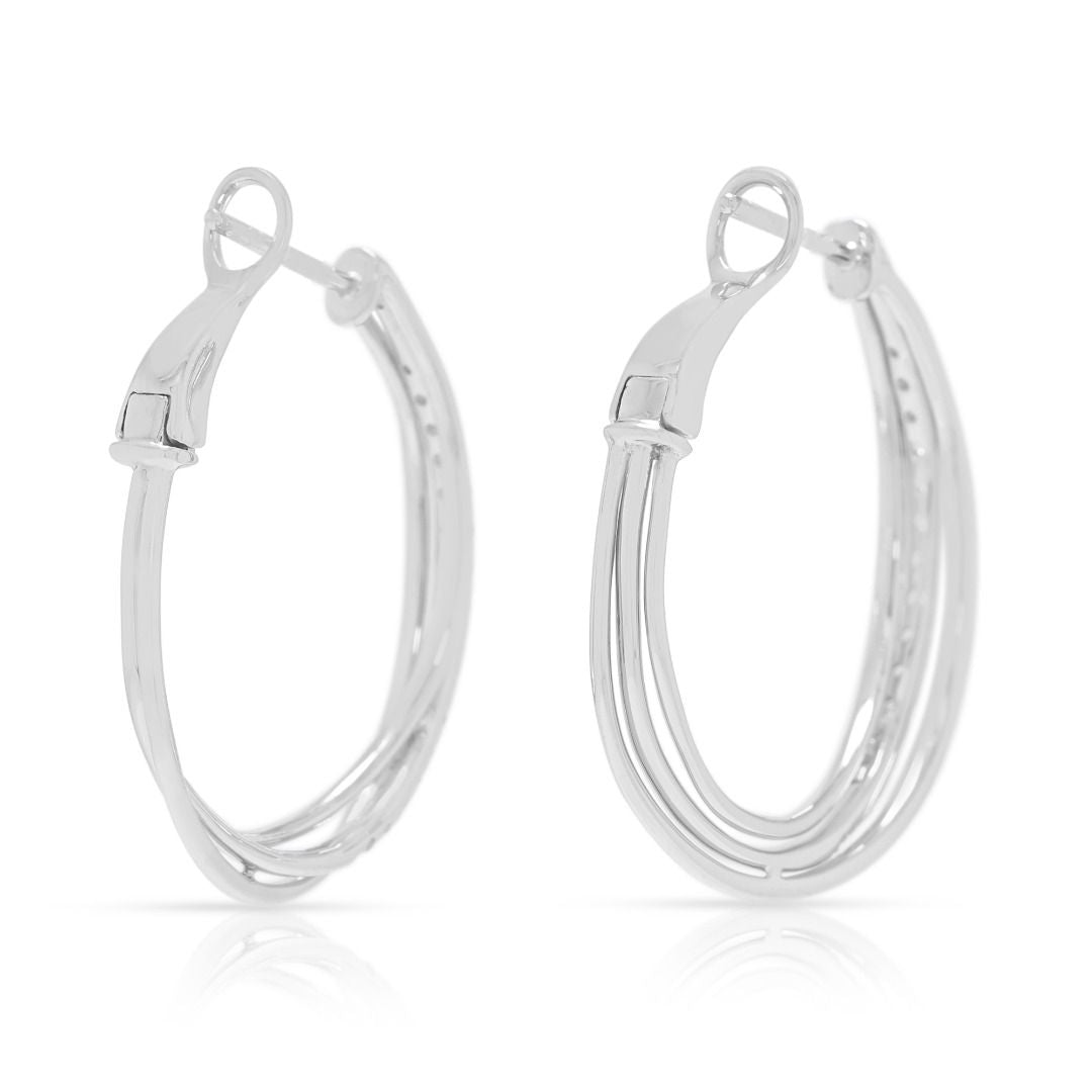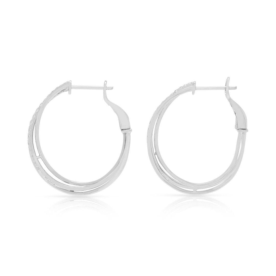 עגילי חישוק Destinee יוקרתיים מזהב לבן 18 קראט, משובצים ביהלומים טבעיים במשקל 0.48 קראט (חדש)