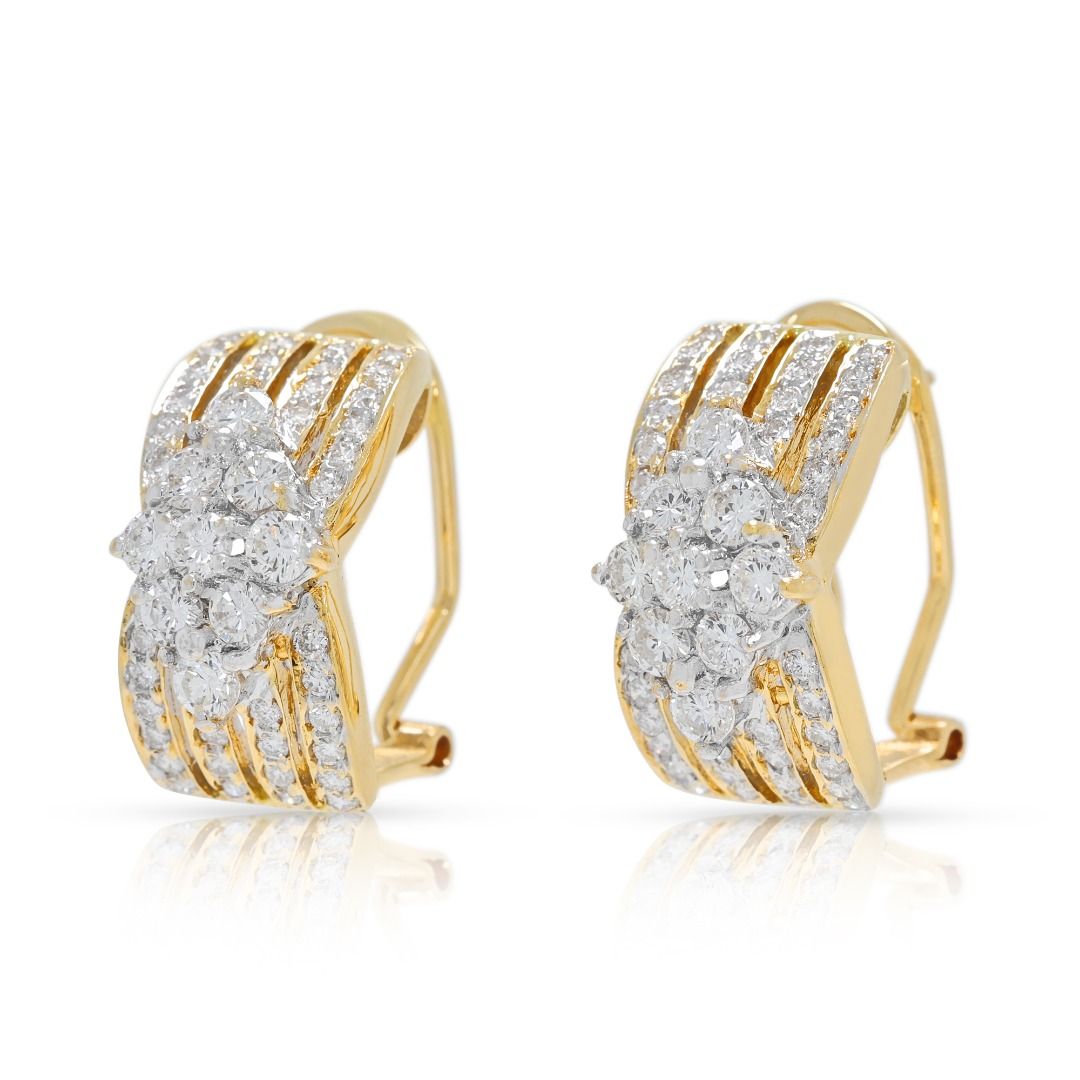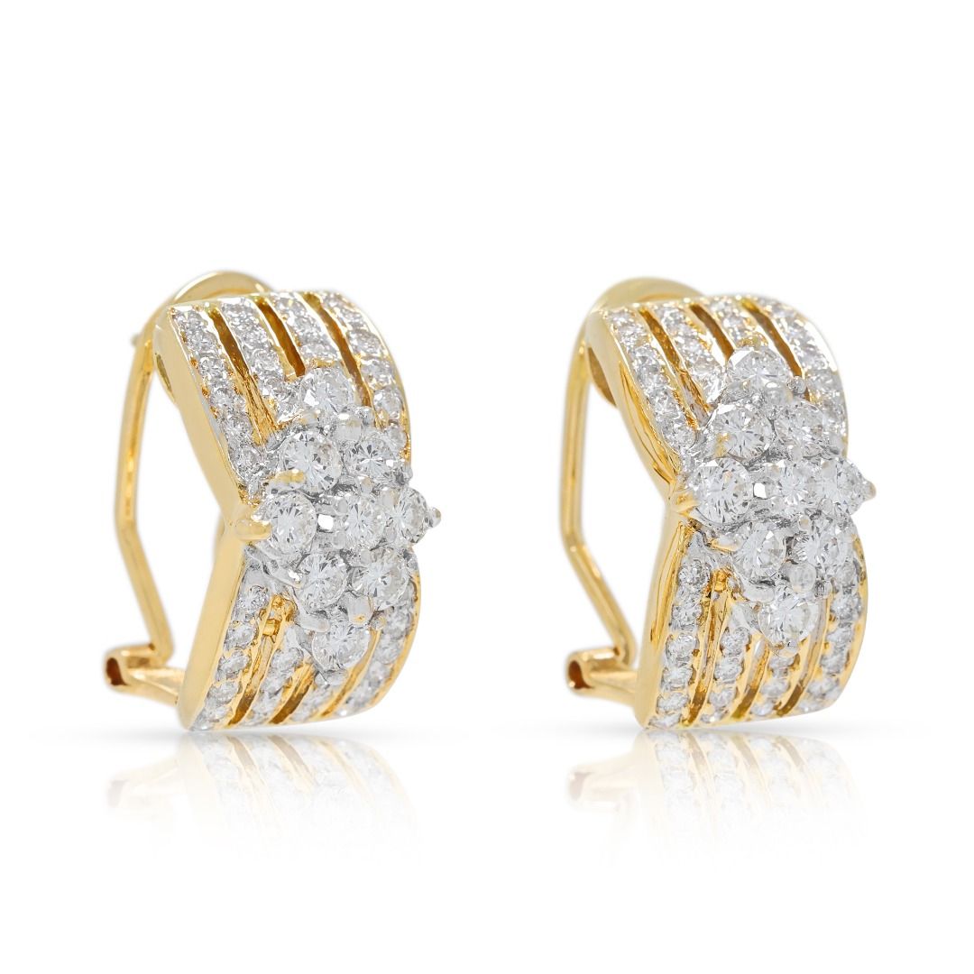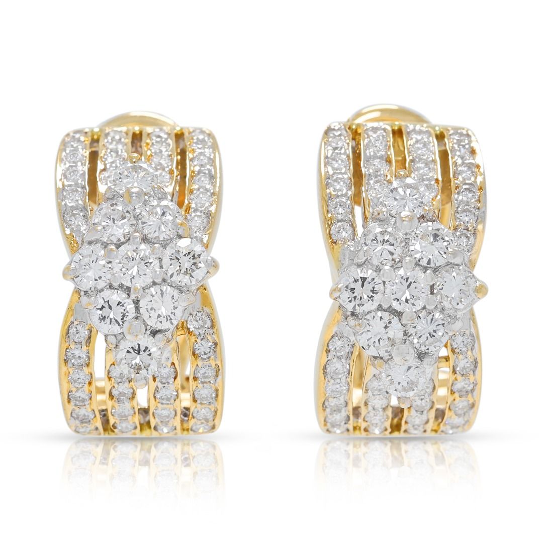 זוג עגילים הזוהרים בתחכום נצחי. עשויים מזהב דו-גוני 18 קראט, הם משובצים ב-18 יהלומים טבעיים עגולים בחיתוך בריליאנט (סה"כ 0.72 קרט, צבע G–H, ניקיון VS) ומשופרים על ידי 80 יהלומים עגולים בחיתוך בריליאנט (סה"כ 0.32 קרט, צבע G–H, ניקיון VS). עם משקל כולל של 1.04 קרט יהלומים, משקל תכשיט של 10.71 גרם, ואורך של 18 מ"מ, עגילים אלה מגלמים אומנות מעודנת וברק זוהר, מה שהופך אותם לתכשיט הצהרתי לאירועים אלגנטיים.