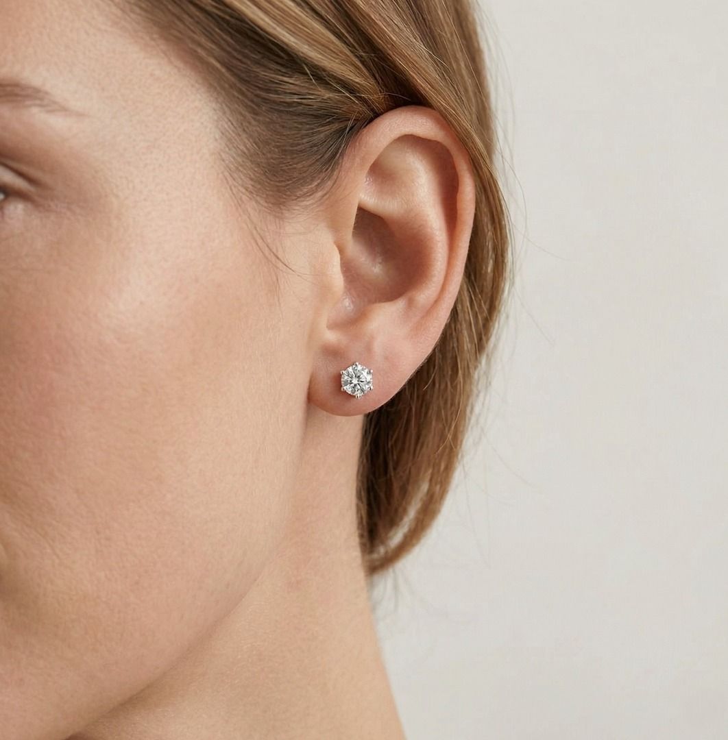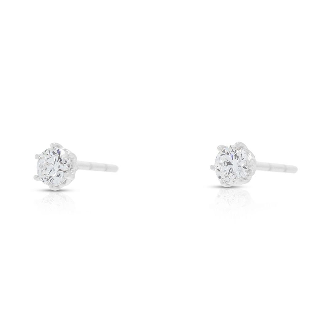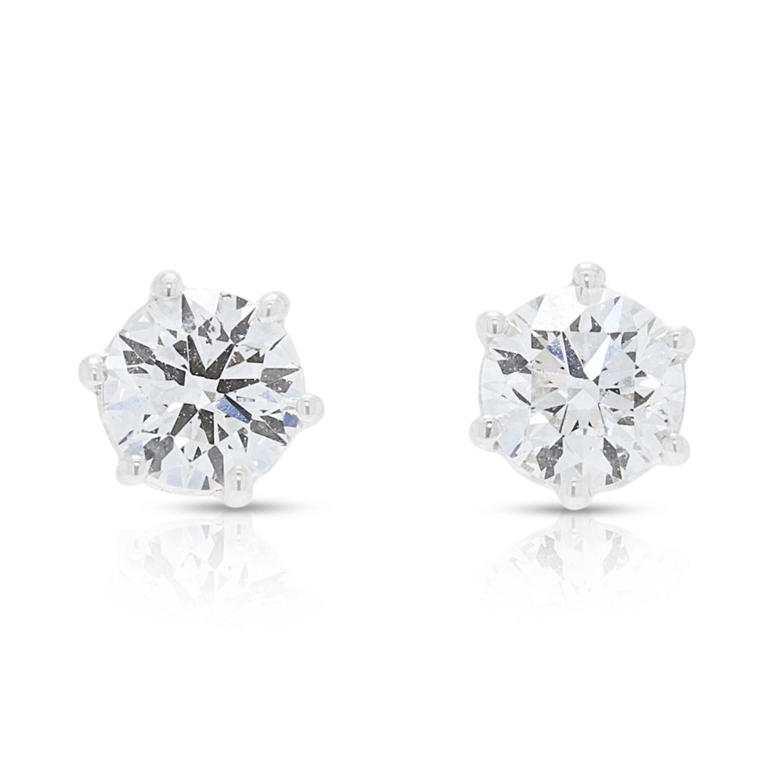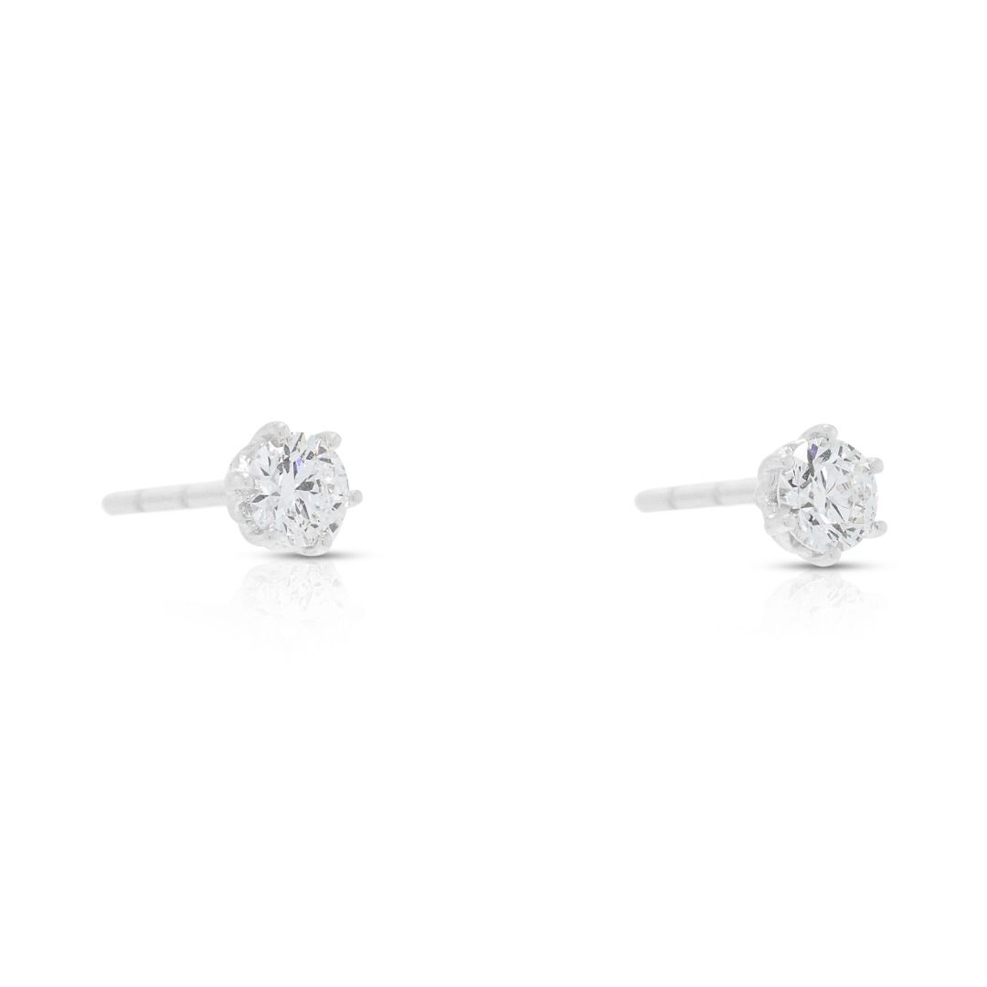 עגילי סוליטר צמודים מבית Gold Heart, משובצים יהלומים בחיתוך בריליאנט במשקל 0.80 קרט, בזהב לבן 18 קראט – מתועדת GIA.